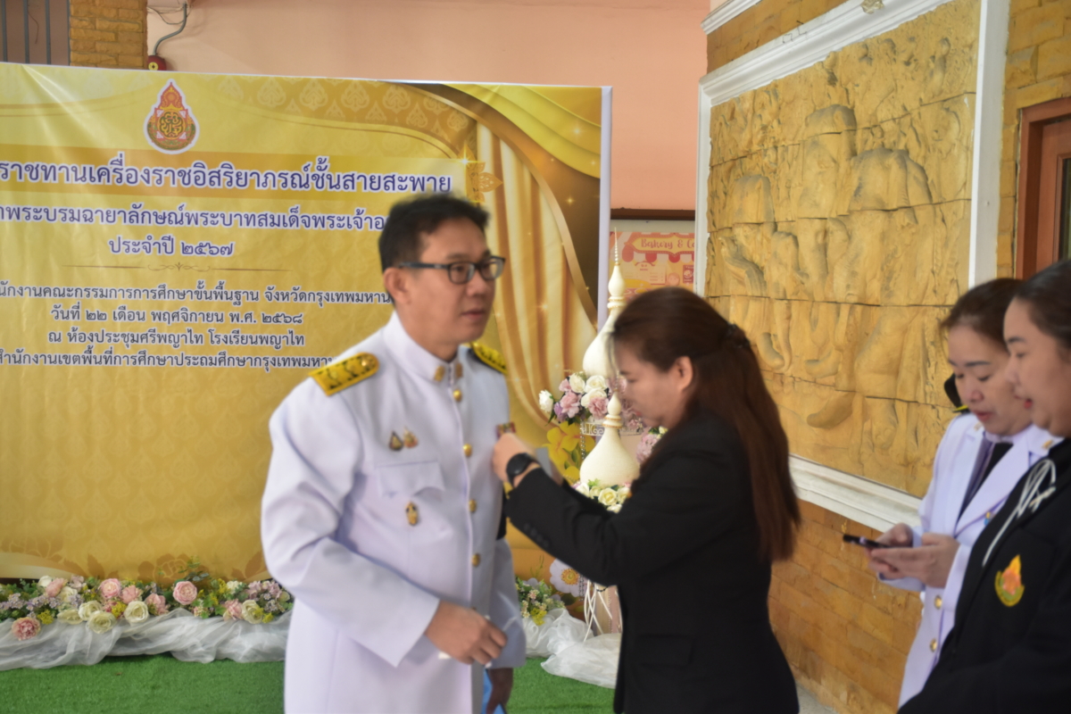 นายวสันต์ กิวัฒนา รองผู้อำนวยการสำนักงานเขตพื้นที่การศึกษามัธยมศึกษากรุงเทพมหานคร เขต 1 ร่วมพิธีรับพระราชทานเครื่องราชอิสริยาภรณ์ ชั้นสายสะพาย