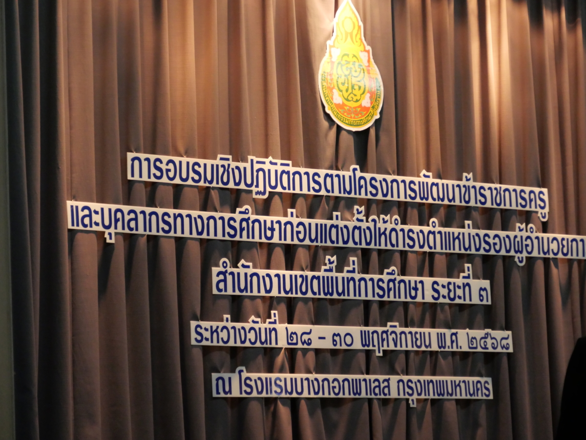 วันศุกร์ที่ 28 พฤศจิกายน พ.ศ. 2568 เวลา 09.00 น. ดร.อดุลย์ศักดิ์ บุญเอนก ผอ.สพม.กท 1 เข้าร่วมการอบรมในฐานะคณะกรรมการดำเนินการอบรมเชิงปฏิบัติการตามโครงการพัฒนาข้าราชการครูและบุคลากรทางการศึกษาก่อนแต่งตั้งให้ดำรงตำแหน่งผู้อำนวยการสำนักงานเขตพื้นที่การศึกษา ระยะที่ 3 วิเคราะห์ สังเคราะห์ สรุปผลการเรียนรู้และการฝึกประสบการณ์ที่ได้จากการพัฒนา (ระยะเวลา 3 วัน) ซึ่งมีกำหนดระหว่างวันที่ 28 -30 พฤศจิกายน 2568 ณ โรงแรมบางกอกพาเลส กรุงเทพมหานคร