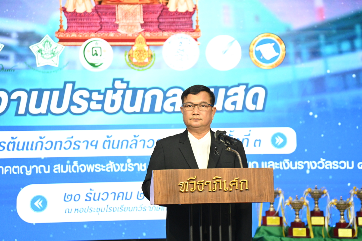 วันเสาร์ที่ 20 ธ.ค. 2568 เวลา 09.30 น. ดร.อดุลย์ศักดิ์ บุญเอนก ผู้อำนวยการสำนักงานเขตพื้นที่การศึกษามัธยมศึกษากรุงเทพมหานคร เขต 1 เป็นประธานในพิธีเปิดงานประชันกลอนสด “ต้นแก้วทวีธาฯ ต้นกล้าวรรณศิลป์” ครั้งที่ 3 ประจำปี 2568 ชิงโล่ประทานสมเด็จพระอริยวงศาคตญาณ สมเด็จพระสังฆปรินายก ระดับประถมศึกษาและมัธยมศึกษา ซึ่งจัดโดย กลุ่มสาระการเรียนรู้ภาษาไทย โรงเรียนทวีธาภิเศก สมาคมผู้ปกครองและครูทวีธาภิเศก ร่วมกับ สถาบันสุนทรภู่ กองทุนนภาลัย สุวรรณธาดา เพื่องานวรรณศิลป์ และสมาคมนักกลอนแห่งประเทศไทย ณ หอประชุม พลเอก สุจินดา คราประยูร โรงเรียนทวีธาภิเศก