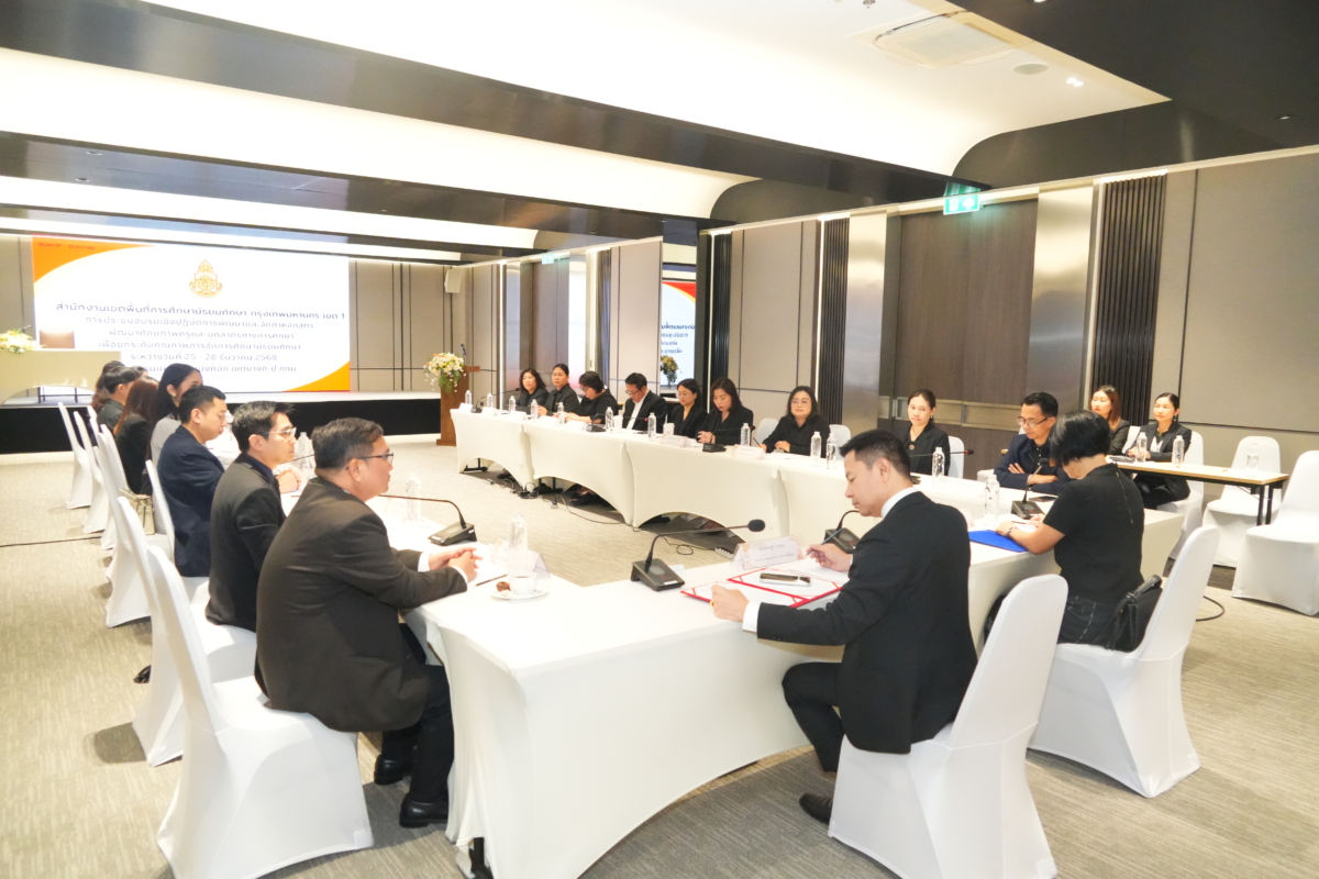 วันที่ 26 ธันวาคม 2568 เวลา 09.00 น. ดร.อดุลย์ศักดิ์ บุญเอนก ผู้อำนวยการสำนักงานเขตพื้นที่การศึกษามัธยมศึกษากรุงเทพมหานคร เขต 1 พร้อมด้วย นายวสันต์ กิวัฒนา รองผู้อำนวยการสำนักงานเขตพื้นที่การศึกษามัธยมศึกษากรุงเทพมหานคร เขต 1 ร่วมการประชุมอบรมเชิงปฏิบัติการพัฒนาและจัดทำหลักสูตรพัฒนาศักยภาพครูและบุคลากรทางการศึกษา เพื่อยกระดับคุณภาพการจัดการศึกษามัธยมศึกษาพัฒนาและจัดทำหลักสูตรพัฒนาศักยภาพครูผู้สอนทางด้านภาษาจีนธุรกิจ ด้านการประกอบธุรกิจและความเป็นผู้ประกอบการ และด้านแนะแนวอาชีพ ให้สามารถจัดการเรียนการสอนที่รองรับอาชีพในพื้นที่เขตพัฒนาพิเศษภาคตะวันออก รวมถึงพัฒนาและจัดทำหลักสูตรพัฒนาบุคลากรทางการศึกษา เพื่อยกระดับคุณภาพการจัดการศึกษามัธยมศึกษา ให้สามารถขยายผลไปยังสถานศึกษามัธยมศึกษาทั่วประเทศได้อย่างมีประสิทธิภาพ โดยมี ดร.พิเชฐร์ วันทอง รองเลขาธิการคณะกรรมการการศึกษาขั้นพื้นฐาน เป็นประธานในการประชุม ณ ณ โรงแรมแมดิสัน แบงค็อก กรุงเทพมหานคร