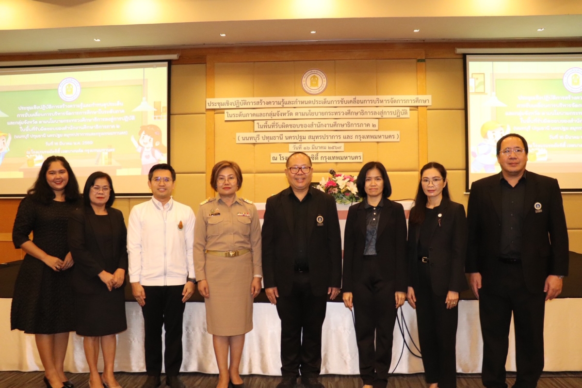 วันจันทร์ที่ 16 มีนาคม 2569 เวลา 08.30 น. ดร.อดุลย์ศักดิ์ บุญเอนก ผู้อำนวยการสำนักงานเขตพื้นที่การศึกษามัธยมศึกษากรุงเทพมหานคร เขต 1 มอบหมายให้ นายวสันต์ กิวัฒนา รอง ผู้อำนวยการสำนักงานเขตพื้นที่การศึกษามัธยมศึกษากรุงเทพมหานคร เขต 1 เข้าร่วมประชุมเชิงปฏิบัติการสร้างความรู้และกำหนดประเด็นการขับเคลื่อนการบริหารจัดการการศึกษาในระดับภาคและกลุ่มจังหวัด ตามนโยบายกระทรวงศึกษาธิการลงสู่การปฏิบัติในพื้นที่รับผิดชอบของสำนักงานศึกษาธิการภาค 2 (นนทบุรี ปทุมธานี นครปฐม สมุทรปราการ และกรุงเทพมหานคร) โดยมี ดร.ธนภัทร แสงจันทร์ รองศึกษาธิการภาค 2 เป็นประธานในการประชุม ณ โรงแรมรอยัลซิตี้ กรุงเทพมหานคร