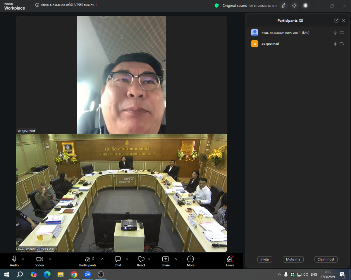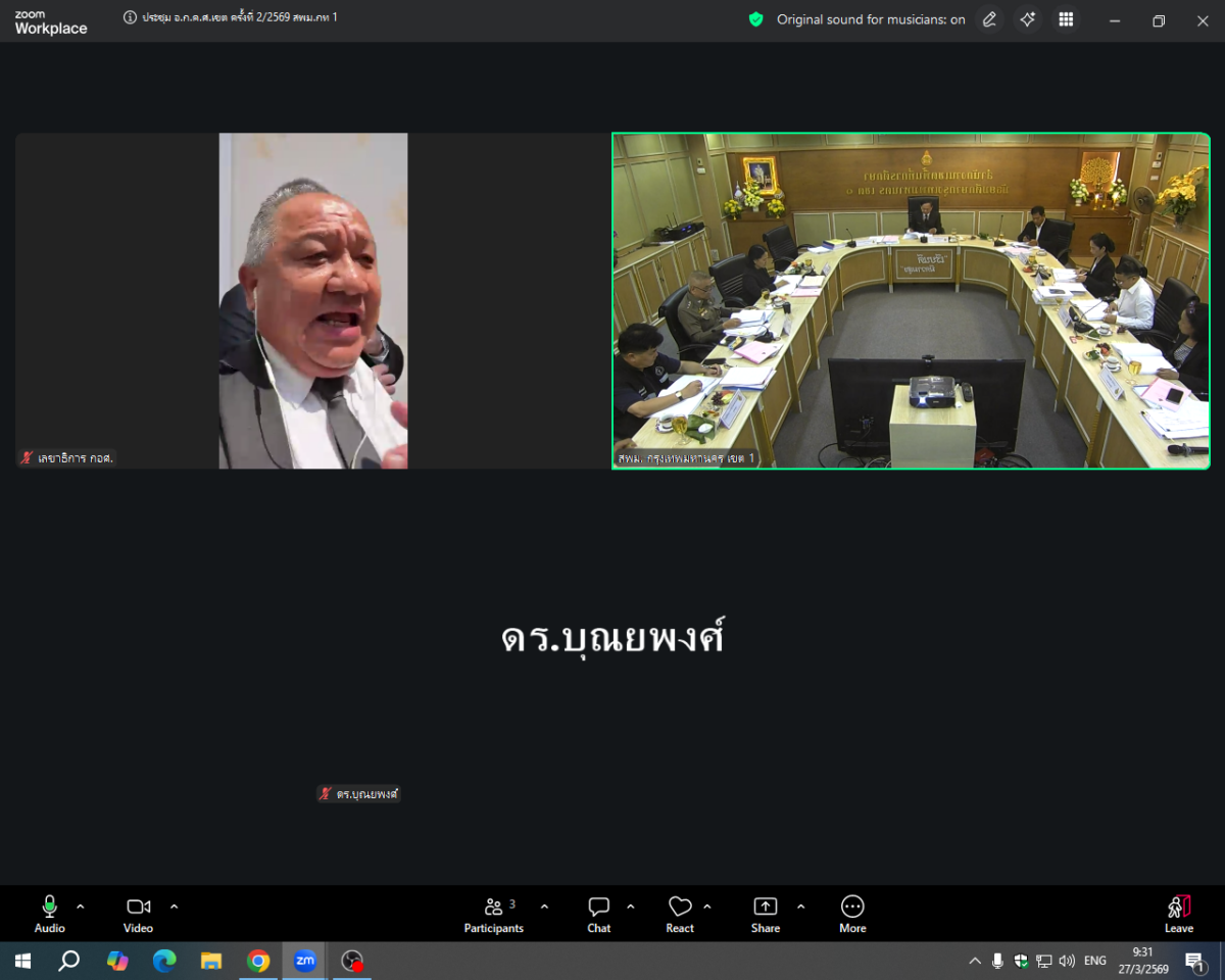 วันที่ 27 มีนาคม 2569 เวลา 09.30 น. กลุ่มบริหารงานบุคคล สำนักงานเขตพื้นที่การศึกษามัธยมศึกษากรุงเทพมหานคร เขต 1 ดำเนินการจัดประชุมคณะอนุกรรมการใน อ.ก.ค.ศ. เขตพื้นที่การศึกษามัธยมศึกษากรุงเทพมหานคร เขต 1 ครั้งที่ 2 ประจำปี พ.ศ. 2569 โดยมี นายประเสริฐ บุญเรือง ประธาน อ.ก.ค.ศ. เป็นประธานการประชุม พร้อมด้วย นายถนอม บุญโต รองผู้อำนวยการสำนักงานเขตพื้นที่การศึกษามัธยมศึกษากรุงเทพมหานคร เขต 1 และคณะอนุกรรมการฯ โดยเป็นการประชุมแบบ Onsite และOnline ผ่านระบบ ZOOM MEETING ซึ่งจัดขึ้น ณ ห้องประชุมเพชรเกษม ชั้น 2 สำนักงานเขตพื้นที่การศึกษามัธยมศึกษากรุงเทพมหานคร เขต 1 (บางแวก)