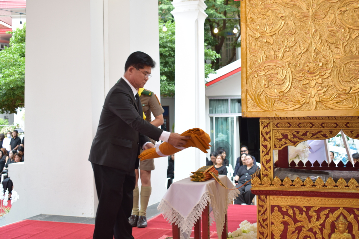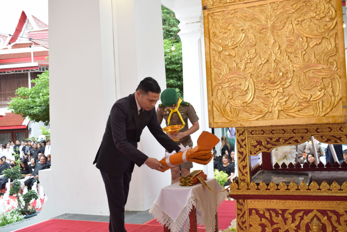 วันที่ 30 ตุลาคม 2568 เวลา 17.00 น. ดร.อดุลย์ศักดิ์ บุญเอนก ผู้อำนวยการสำนักงานเขตพื้นที่การศึกษามัธยมศึกษากรุงเทพมหานคร เขต 1 มอบหมายให้ นายถนอม บุญโต นายวสันต์ กิวัฒนา รองผู้อำนวยการสำนักงานเขตพื้นที่การศึกษามัธยมศึกษากรุงเทพมหานคร เขต 1 เป็นประธานทอดผ้าบังสุกุล พร้อมนำคณะผู้บริหาร บุคลากร สพม.กท 1 ผู้บริหารสถานศึกษา และครูในสังกัด ร่วมงานพระราชทานเพลิง นายราเมศ มุสิกานนท์ อดีตผู้อำนวยการโรงเรียนชิโนรสวิทยาลัย ณ วัดชิโนรสารามวรวิหาร