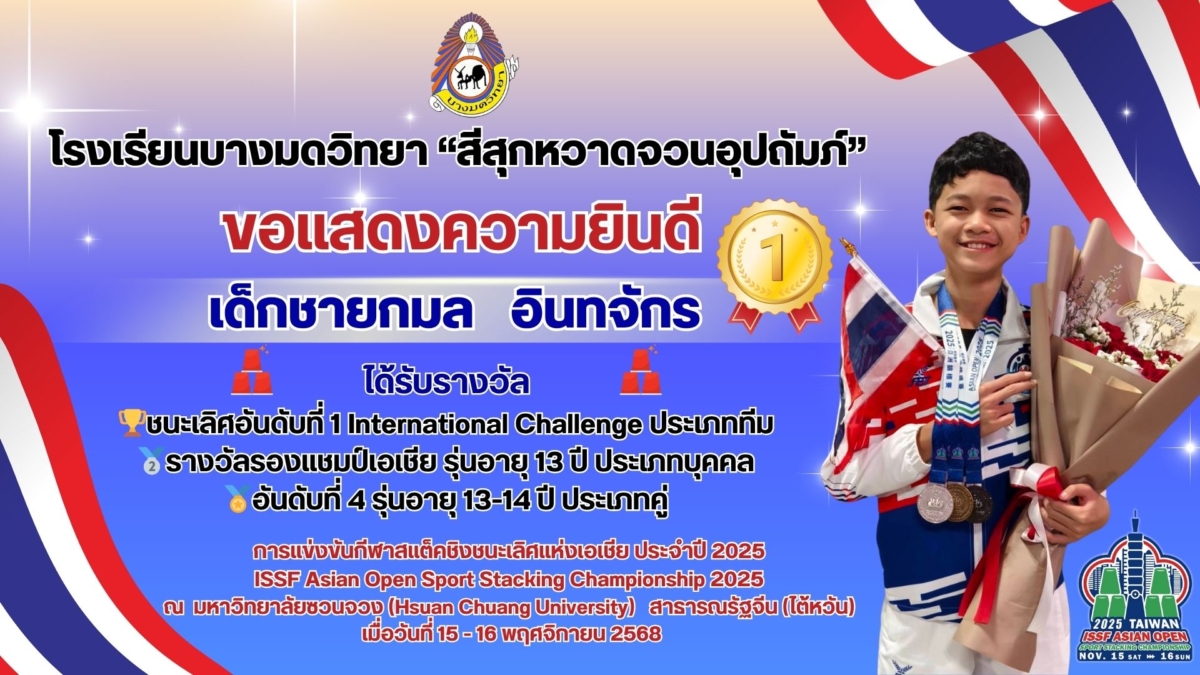 โรงเรียนบางมดวิทยา “สีสุกหวาดจวนอุปถัมภ์” ขอแสดงความยินดีกับคุณครูและนักเรียน ในการแข่งขันกีฬาสแต็คชิงแชมป์ประเทศไทย ประจำปี 2568 WSSA 2025 Thailand Open Sport Stacking Championshipsโดยงานเว็บไซต์โรงเรียนบางมดวิทยาฯวันที่17 ธันวาคม 256817 ธันวาคม 2025