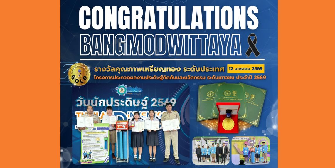 โรงเรียนบางมดวิทยา “สีสุกหวาดจวนอุปถัมภ์”ได้รับ “รางวัลคุณภาพ ระดับเหรียญทอง” ระดับมัธยมศึกษา กลุ่มเรื่องพลังงาน วัสดุ เคมีชีวภาพ และอุตสาหกรรม จัดโดย สำนักงานการวิจัยแห่งชาติ (วช.) กระทรวงการอุดมศึกษา วิทยาศาสตร์ วิจัยและนวัตกรรมโดยงานเว็บไซต์โรงเรียนบางมดวิทยาฯวันที่12 มกราคม 256912 มกราคม 2026
