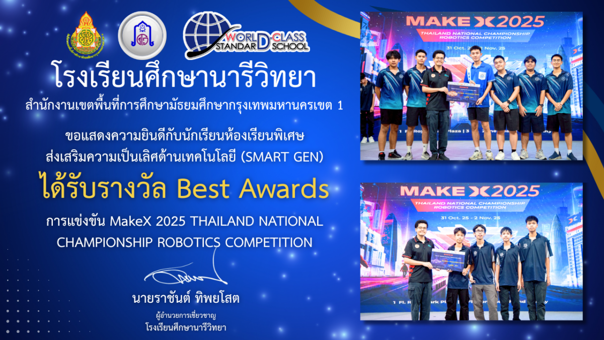 ศ.ว.รับรางวัล Best Awards ของการแข่งขัน MakeX 2025 THAILAND NATIONAL CHAMPIONSHIP ROBOTICS COMPETITIONโดยศิริชัย ญาณปัญญาวันที่11 ธันวาคม 256811 ธันวาคม 2025