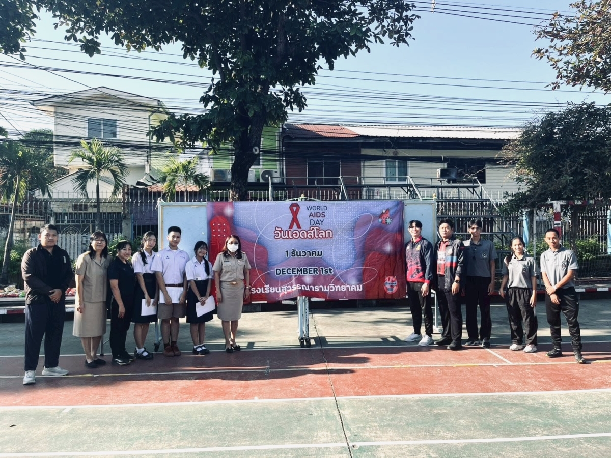 วันที่ 1 ธันวาคม 2568 กิจกรรมรณรงค์เนื่องใน วันเอดส์โลก ประจำปี 2568 เพื่อเสริมสร้างความรู้ ความเข้าใจที่ถูกต้องเกี่ยวกับโรคเอดส์ ณ สนามโรงเรียนสุวรรณารามโดยราเชนทร์ พวงพวาวันที่1 ธันวาคม 25681 ธันวาคม 2025