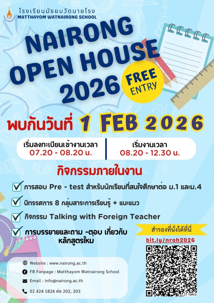 ขอเชิญผู้ปกครองและนักเรียนที่สนใจ เข้าร่วมงานในวันอาทิตย์ที่ 1 กุมภาพันธ์ 2026 พบกับกิจกรรมในงานมากมาย