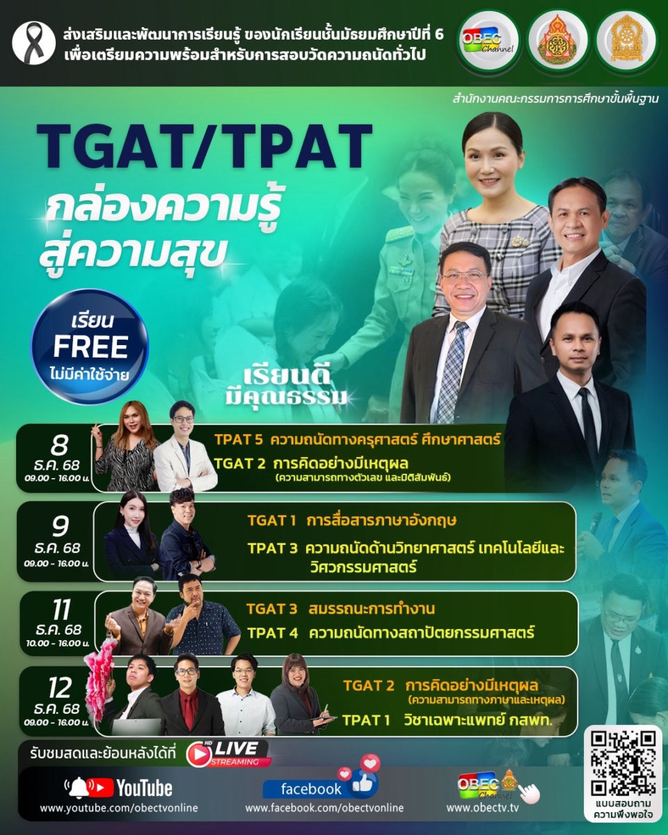 สพฐ.ได้จัดกิจกรรมส่งเสริมและพัฒนาการเรียนรู้ของนักเรียน ม.6 เพื่อเตรียมความพร้อม สำหรับการสอบวัดความถนัดทั่วไป (TGAT และ TPAT) ตามปฏิทินการสอบ TCAS69 ผ่านระบบออนไลน์