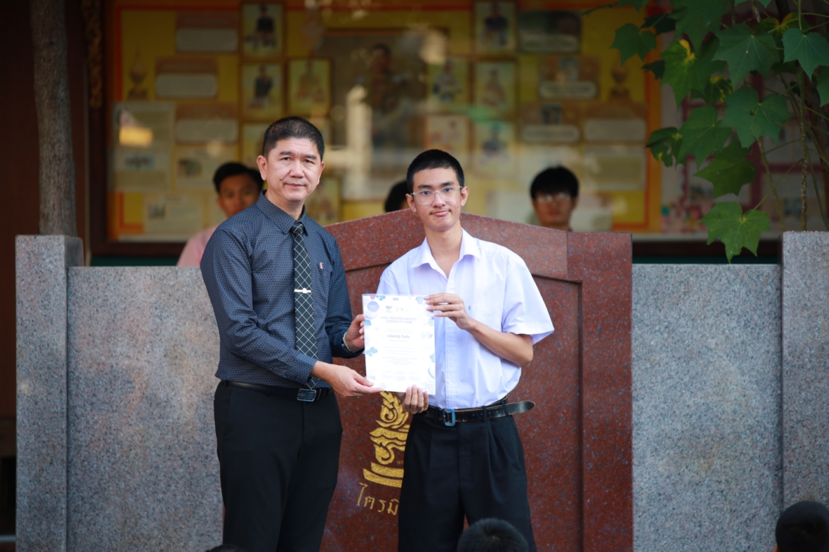 1.นายชนัชญ์กรณ์ ดีดา ชั้นมัธยมศึกษาปีที่ 6/2 รางวัลเหรียญทอง (ได้คะแนน Top 1-100 ของประเทศ)