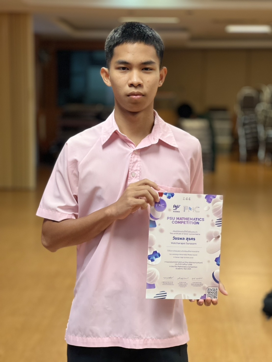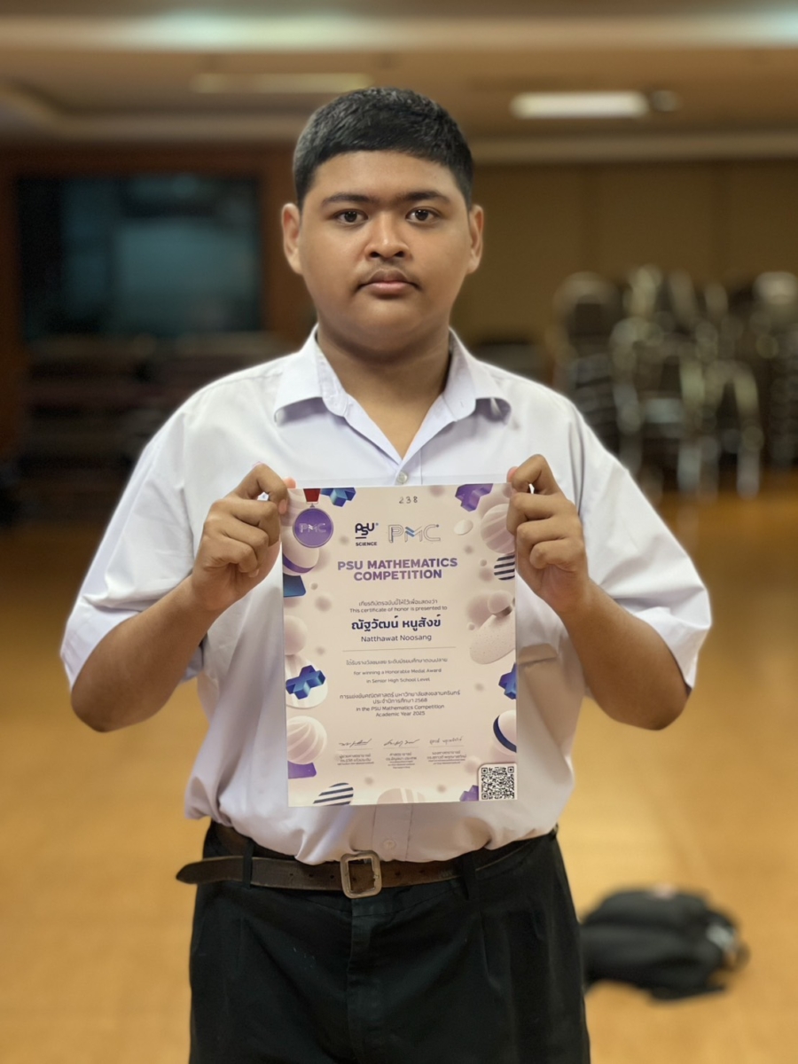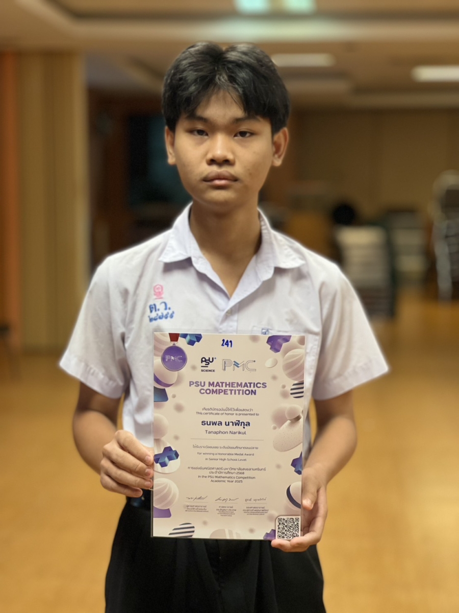 โรงเรียนไตรมิตรวิทยาลัยขอแสดงความยินกับนักเรียนที่ได้รับรางวัลจากการแข่งขันคณิตศาสตร์ มหาวิทยาลัยสงขลานครินทร์ วิทยาเขตหาดใหญ่ ระดับประเทศ ประจำปีการศึกษา 2568(PSU Mathematics Competition 2025)