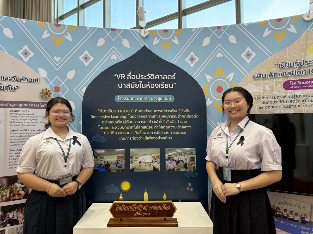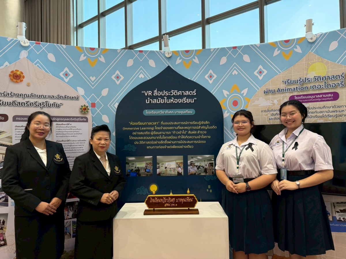 วันพฤหัสบดีที่ 27 พฤศจิกายน พ.ศ. 2568 โรงเรียนทวีธาภิเศก บางขุนเทียน นำโดย นางสาวอิงฟ้า ประยูรสุข ผู้อำนวยการโรงเรียน พร้อมด้วย โกศล หกสุวรรณ ผู้ทรงคุณวุฒิในกรรมการสถานศึกษาโรงเรียนทวีธาภิเศก บางขุนเทียน นางสาวละมัย สินเพียง และ นางสาวจิตติมน หมั่นบำรุง นำนักเรียนเข้าร่วมกิจกรรมโดยนำเสนอประวัติศาสตร์ด้วยเทคโนโลยีดิจิทัลด้วยแว่น VR (Virtual Reality) ในงานนิทรรศการการเรียนการสอนประวัติศาสตร์ “น้อมนำพระราชดำรัส การเรียนการสอนประวัติศาสตร์ชาติไทย” ตามโครงการจัดกิจกรรมขยายผลและขับเคลื่อนการเรียนรู้ประวัติศาสตร์ชาติไทย จัดโดย สำนักงานเขตพื้นที่การศึกษามัธยมศึกษากรุงเทพมหานคร เขต 2 โดยมี ศาสตราจารย์ ดร. นฤมล ภิญโญสินวัฒน์ รัฐมนตรีว่าการกระทรวงศึกษาธิการ เป็นประธานในพิธี พร้อมด้วย คณะผู้บริหาร ครู และนักเรียนจากโรงเรียนต่างๆ ทั่วประเทศ เข้าร่วมกิจกรรมซึ่งจัดขึ้นระหว่างวันที่ 26 – 27 พฤศจิกายน 2568 ณ ศูนย์การประชุมแห่งชาติสิริกิติ์