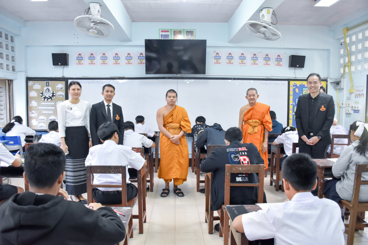 วันพฤหัสบดีที่ 27 พฤศจิกายน 2568 กลุ่มสาระการเรียนรู้สังคมศึกษาศาสนาและวัฒนธรรม กลุ่มบริหารวิชาการ ได้ดำเนินการจัดสอบธรรมศึกษา ประจำปี 2568 โดย นายสุรศักดิ์ เวียนรอบ ผู้อำนวยการโรงเรียน มอบหมายให้ นางสาวฑัชชานันทร์ ชราชิต รองผู้อำนวยการโรงเรียน เป็นประธานเปิดพิธีสอบธรรมศึกษา ประจำปี 2568 ในการนี้ โรงเรียนได้รับความเมตตาจาก พระมหาปรีชา โกวิโท ผู้ช่วยเจ้าอาวาสวัดดุสิดารามวรวิหาร ให้โอวาสและข้อคิดธรรมะแก่นักเรียนผู้เข้าสอบทุกคน เพื่อเป็นกำลังใจในการทำแบบทดสอบ และปลูกฝังคุณธรรมตามหลักธรรมของพระพุทธศาสนา