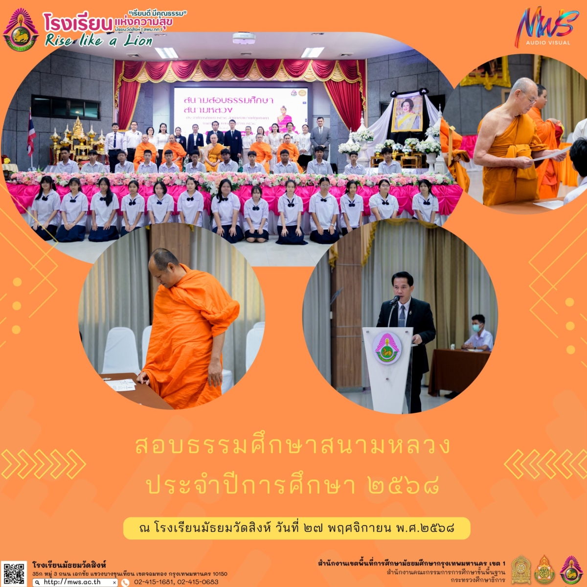 โรงเรียนมัธยมวัดสิงห์ สนามสอบธรรมศึกษาสนามหลวง ประจำปีการศึกษา 2568 สำนักเรียนวัดปทุมคงคา จัดการสอบธรรมศึกษาสนามหลวง โดยมี นายเทพพร อาจเวทย์ ผู้อำนวยการโรงเรียนมัธยมวัดสิงห์ เป็นประธานเปิดสนามสอบ