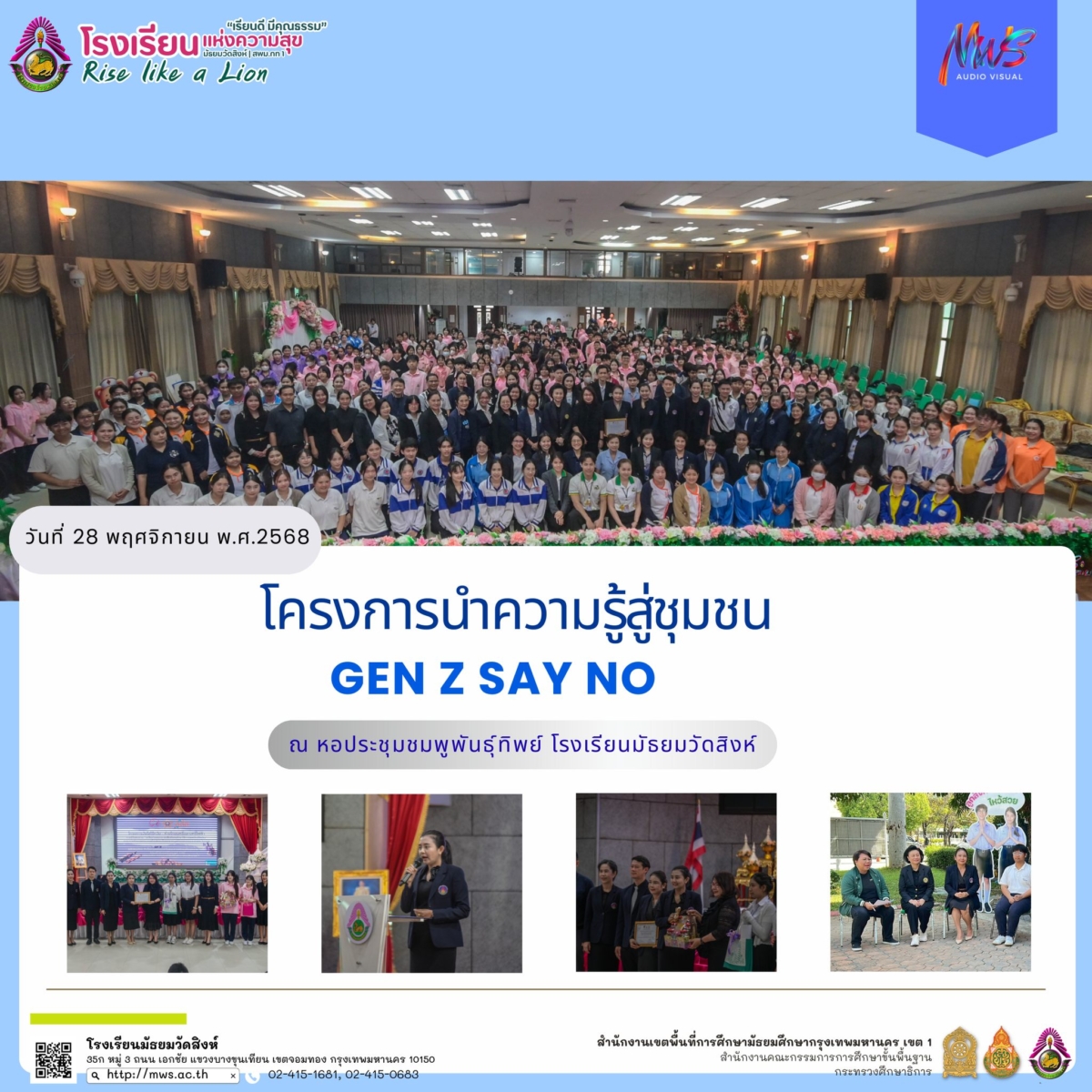 นางสาวศิโรรัตน์ ชัยศิริ รองผู้อำนวยการโรงเรียน กลุ่มบริหารวิชาการ เป็นประธานเปิดกิจกรรมอบรมเชิงปฏิบัติการ “โครงการนำความรู้สู่ชุมชน GEN Z SAY NO” เพื่อสร้างความตระหนักรู้เกี่ยวกับโทษและพิษภัยของบุหรี่และบุหรี่ไฟฟ้า พร้อมทั้งเสริมทักษะการป้องกันตนเองให้แก่นักเรียน