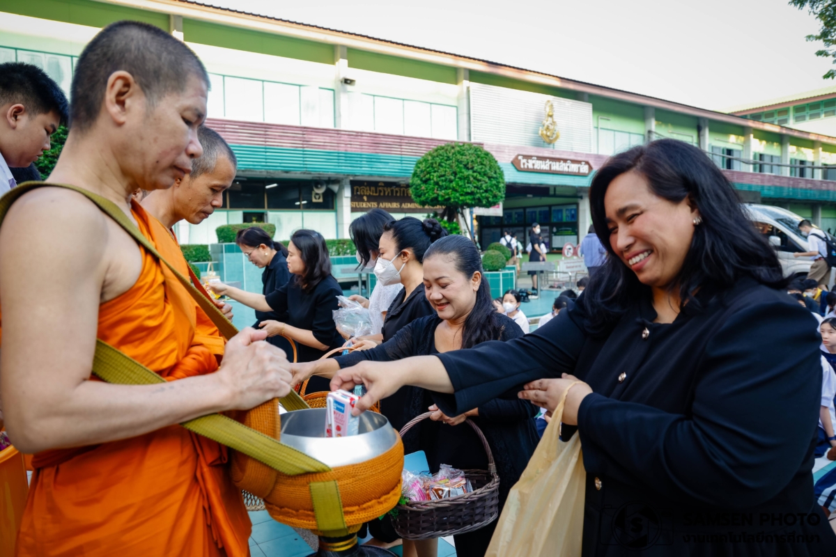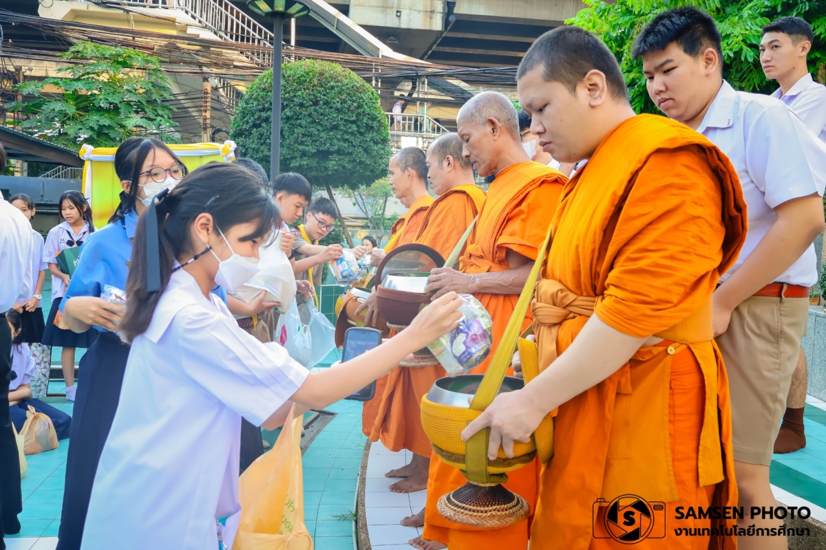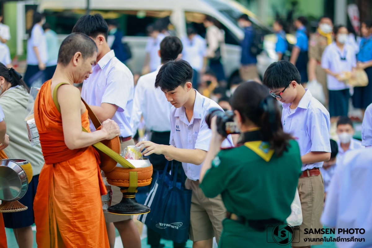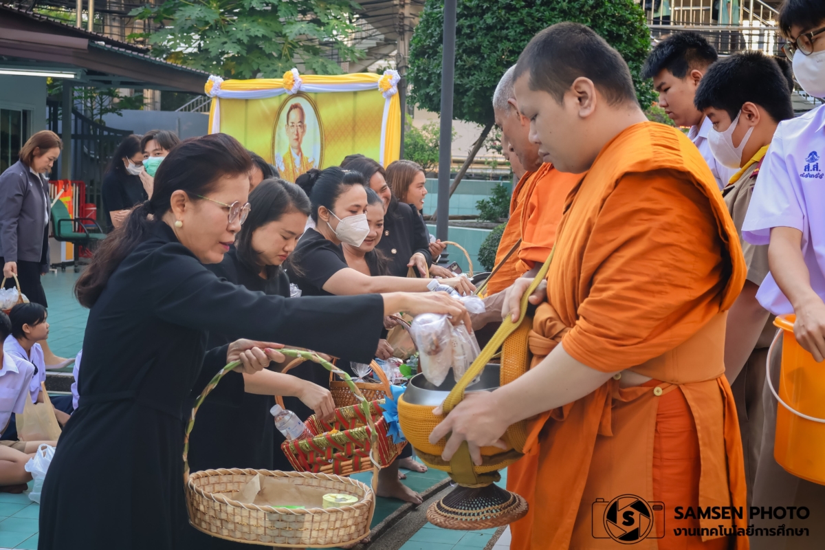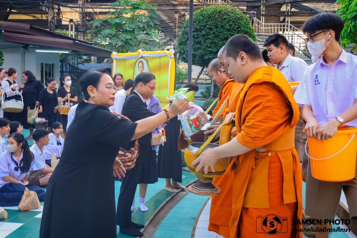 งานส่งเสริมคุณธรรมจริยธรรมนักเรียน กลุ่มบริหารกิจการนักเรียน โรงเรียนสามเสนวิทยาลัย จัดกิจกรรมทำบุญตักบาตรเพื่อถวายเป็นพระราชกุศลแด่พระบาทสมเด็จพระบรมชนกาธิเบศร มหาภูมิพลอดุลยเดชมหาราช บรมนาถบพิตร เนื่องในวันคล้ายวันพระบรมราชสมภพ วันชาติ และวันพ่อแห่งชาติ 5 ธันวาคม 2568 ในวันพุธที่ 3 ธันวาคม พ.ศ. 2568 เวลา 07.00 น. โดยนางสาวปรมาภรณ์ อนุพันธ์ นายกฤษณ์ วัฒนาการ รองผู้อำนวยการโรงเรียนสามเสนวิทยาลัย พร้อมด้วยคณะครู บุคลากรทางการศึกษา ผู้ปกครองและนักเรียนเจ้าภาพ คณะอู่ทอง ม.1/5, ม.2/12, ม.3/9, ม.4/12 และ ม.6/11 ร่วมทำบุญตักบาตร ณ ลานพระ