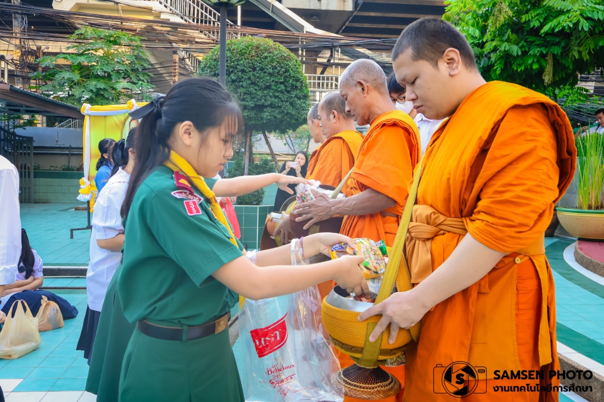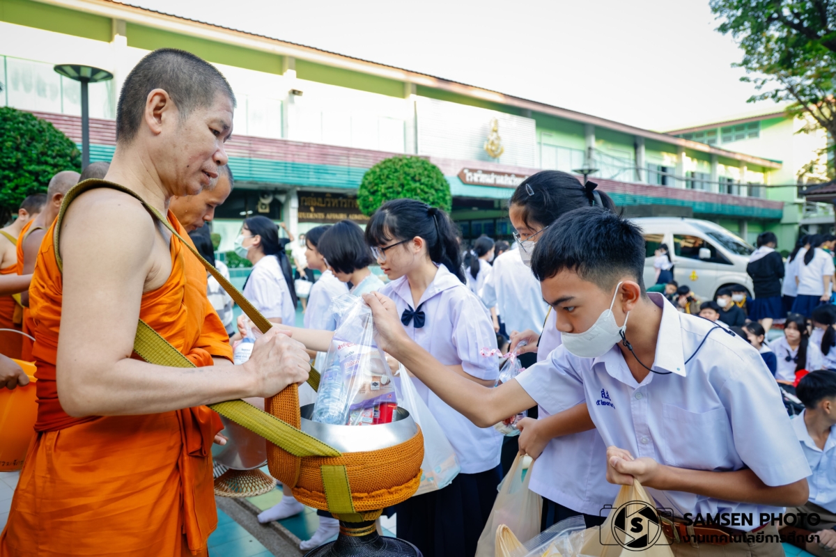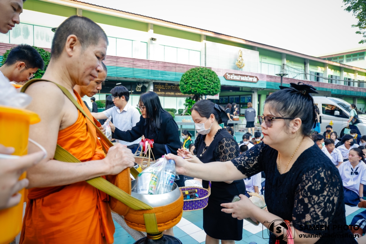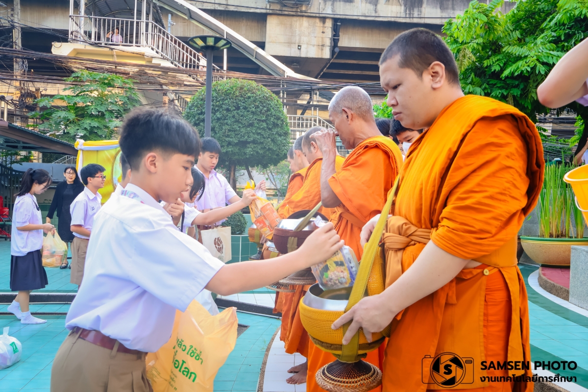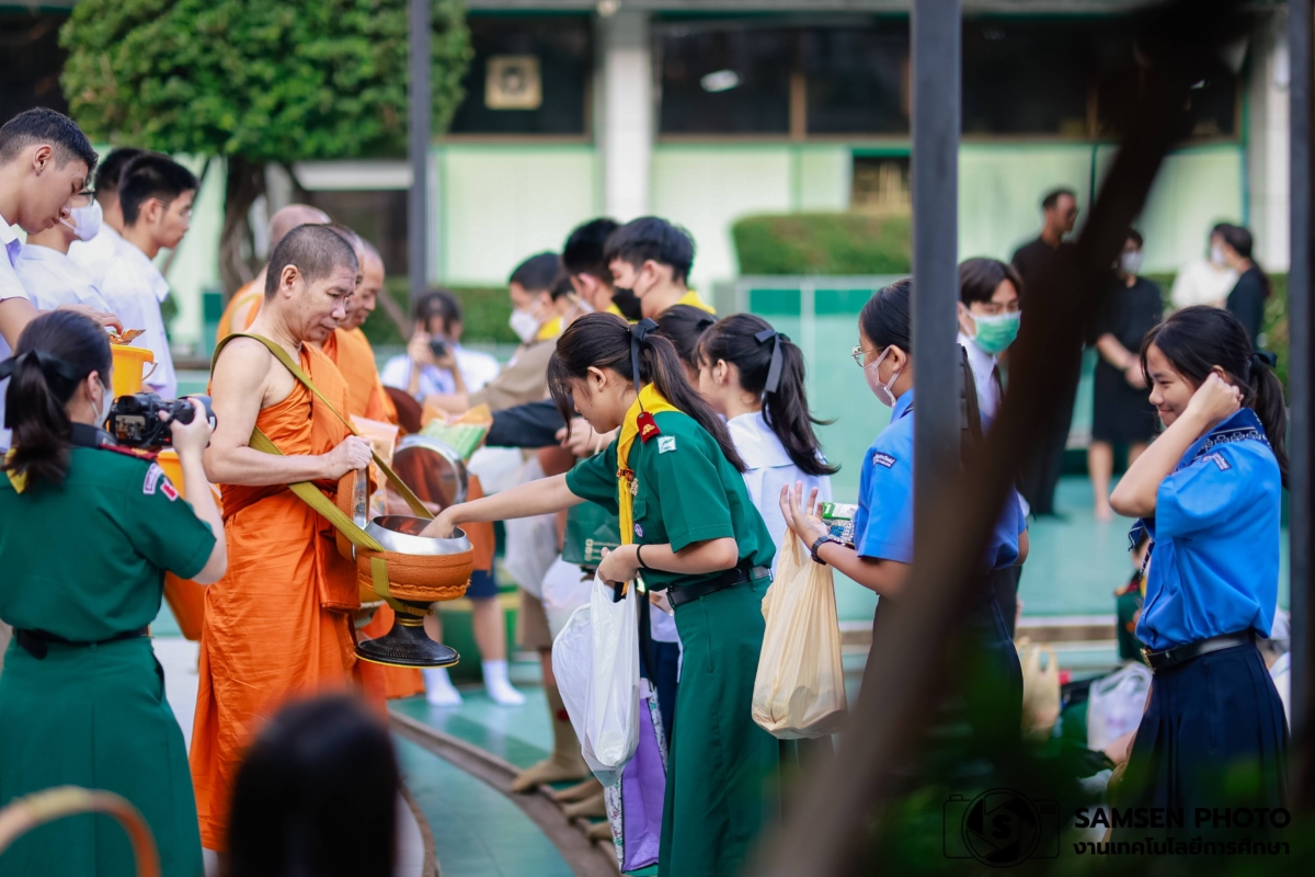 งานส่งเสริมคุณธรรมจริยธรรมนักเรียน กลุ่มบริหารกิจการนักเรียน โรงเรียนสามเสนวิทยาลัย จัดกิจกรรมทำบุญตักบาตรเพื่อถวายเป็นพระราชกุศลแด่พระบาทสมเด็จพระบรมชนกาธิเบศร มหาภูมิพลอดุลยเดชมหาราช บรมนาถบพิตร เนื่องในวันคล้ายวันพระบรมราชสมภพ วันชาติ และวันพ่อแห่งชาติ 5 ธันวาคม 2568 ในวันพุธที่ 3 ธันวาคม พ.ศ. 2568 เวลา 07.00 น. โดยนางสาวปรมาภรณ์ อนุพันธ์ นายกฤษณ์ วัฒนาการ รองผู้อำนวยการโรงเรียนสามเสนวิทยาลัย พร้อมด้วยคณะครู บุคลากรทางการศึกษา ผู้ปกครองและนักเรียนเจ้าภาพ คณะอู่ทอง ม.1/5, ม.2/12, ม.3/9, ม.4/12 และ ม.6/11 ร่วมทำบุญตักบาตร ณ ลานพระ