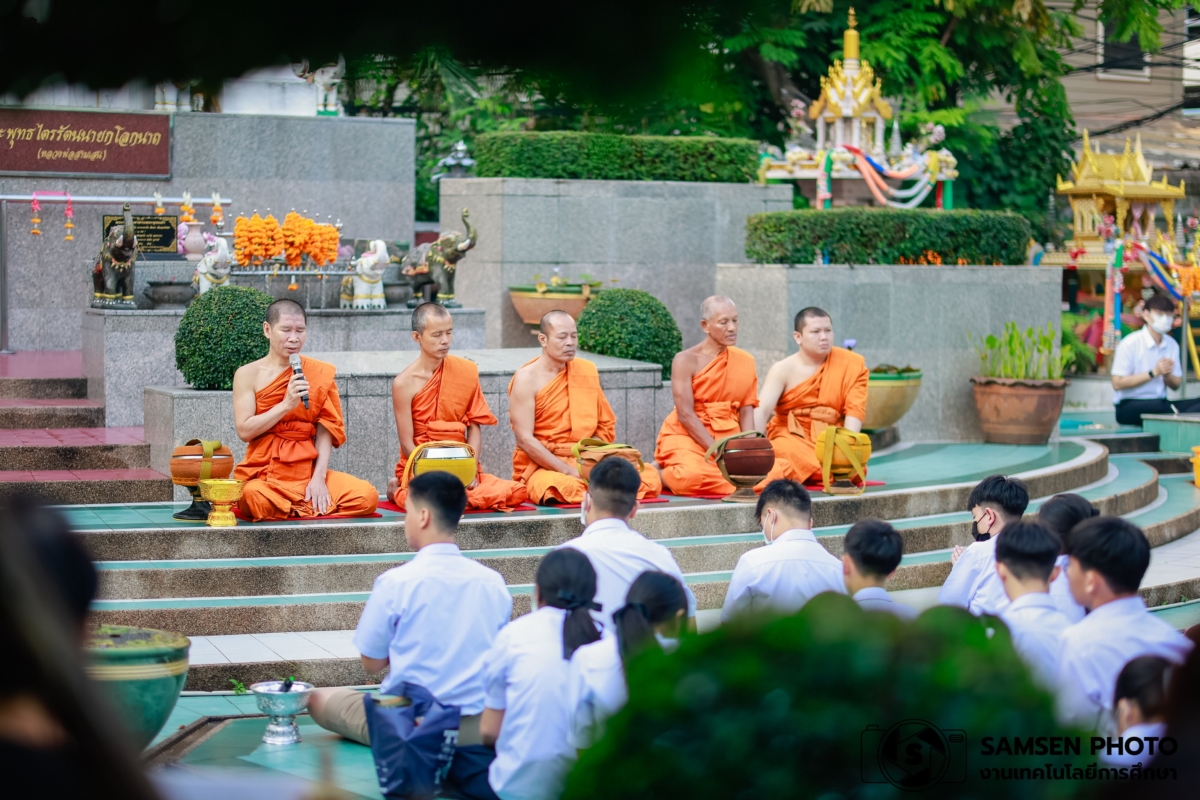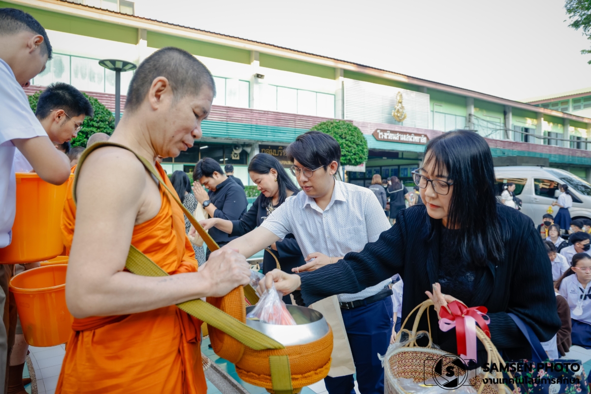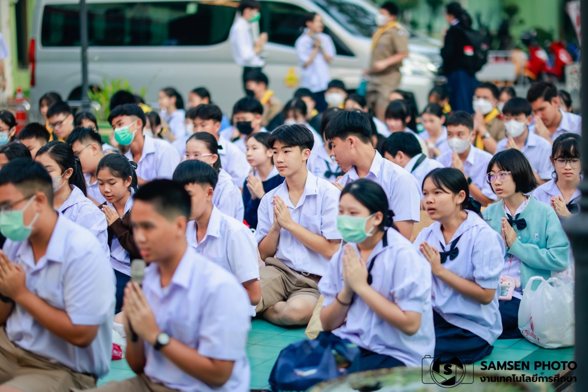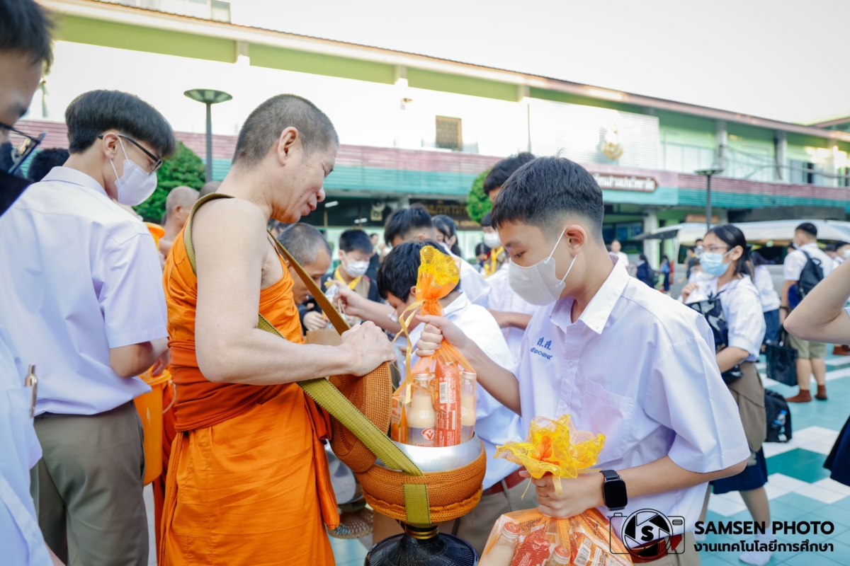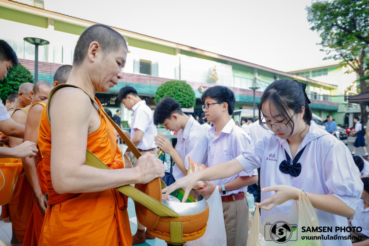 งานส่งเสริมคุณธรรมจริยธรรมนักเรียน กลุ่มบริหารกิจการนักเรียน โรงเรียนสามเสนวิทยาลัย จัดกิจกรรมทำบุญตักบาตรเพื่อถวายเป็นพระราชกุศลแด่พระบาทสมเด็จพระบรมชนกาธิเบศร มหาภูมิพลอดุลยเดชมหาราช บรมนาถบพิตร เนื่องในวันคล้ายวันพระบรมราชสมภพ วันชาติ และวันพ่อแห่งชาติ 5 ธันวาคม 2568 ในวันพุธที่ 3 ธันวาคม พ.ศ. 2568 เวลา 07.00 น. โดยนางสาวปรมาภรณ์ อนุพันธ์ นายกฤษณ์ วัฒนาการ รองผู้อำนวยการโรงเรียนสามเสนวิทยาลัย พร้อมด้วยคณะครู บุคลากรทางการศึกษา ผู้ปกครองและนักเรียนเจ้าภาพ คณะอู่ทอง ม.1/5, ม.2/12, ม.3/9, ม.4/12 และ ม.6/11 ร่วมทำบุญตักบาตร ณ ลานพระ