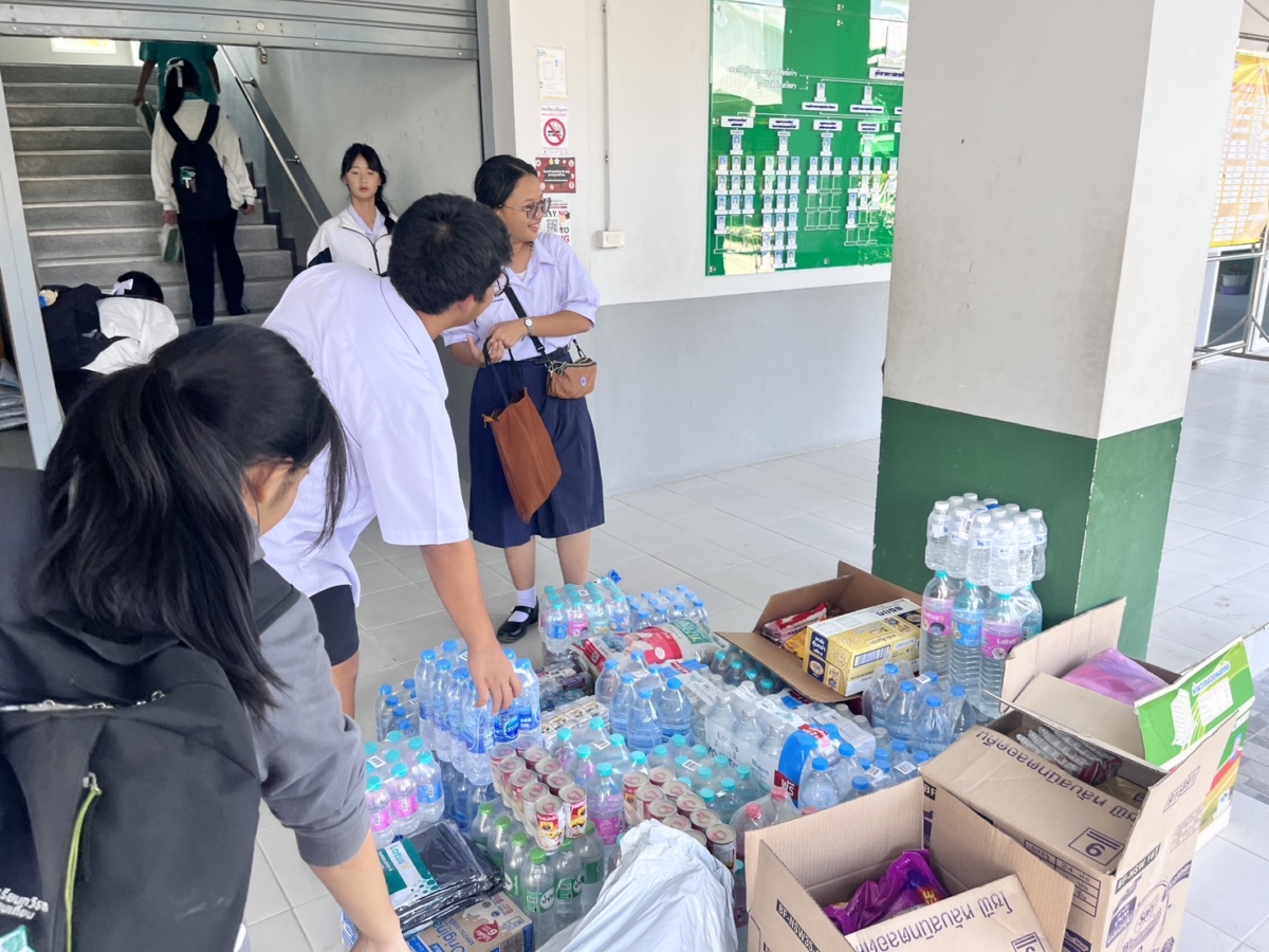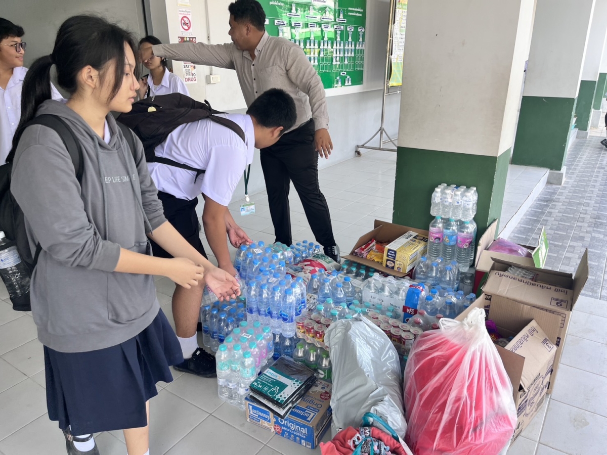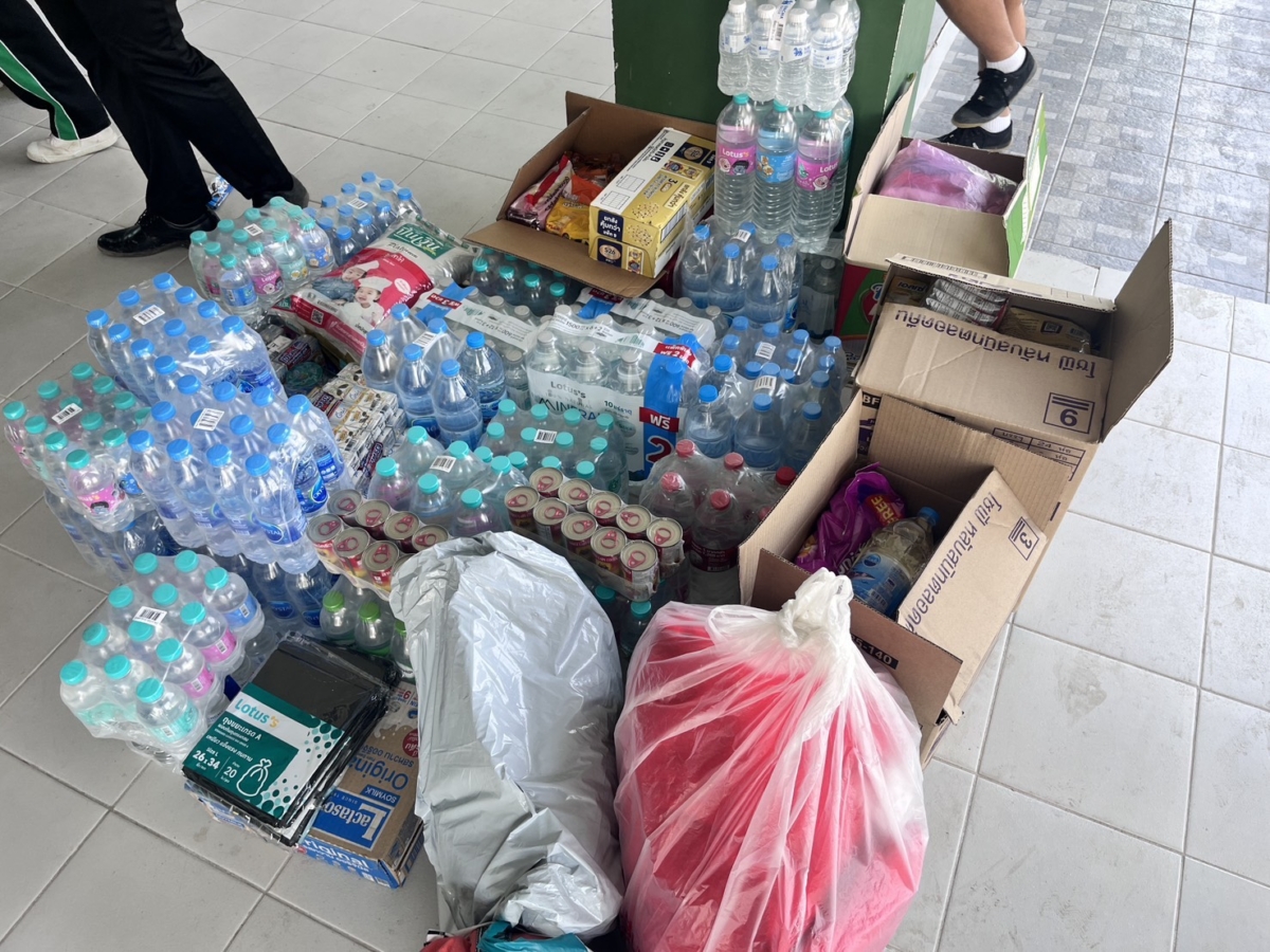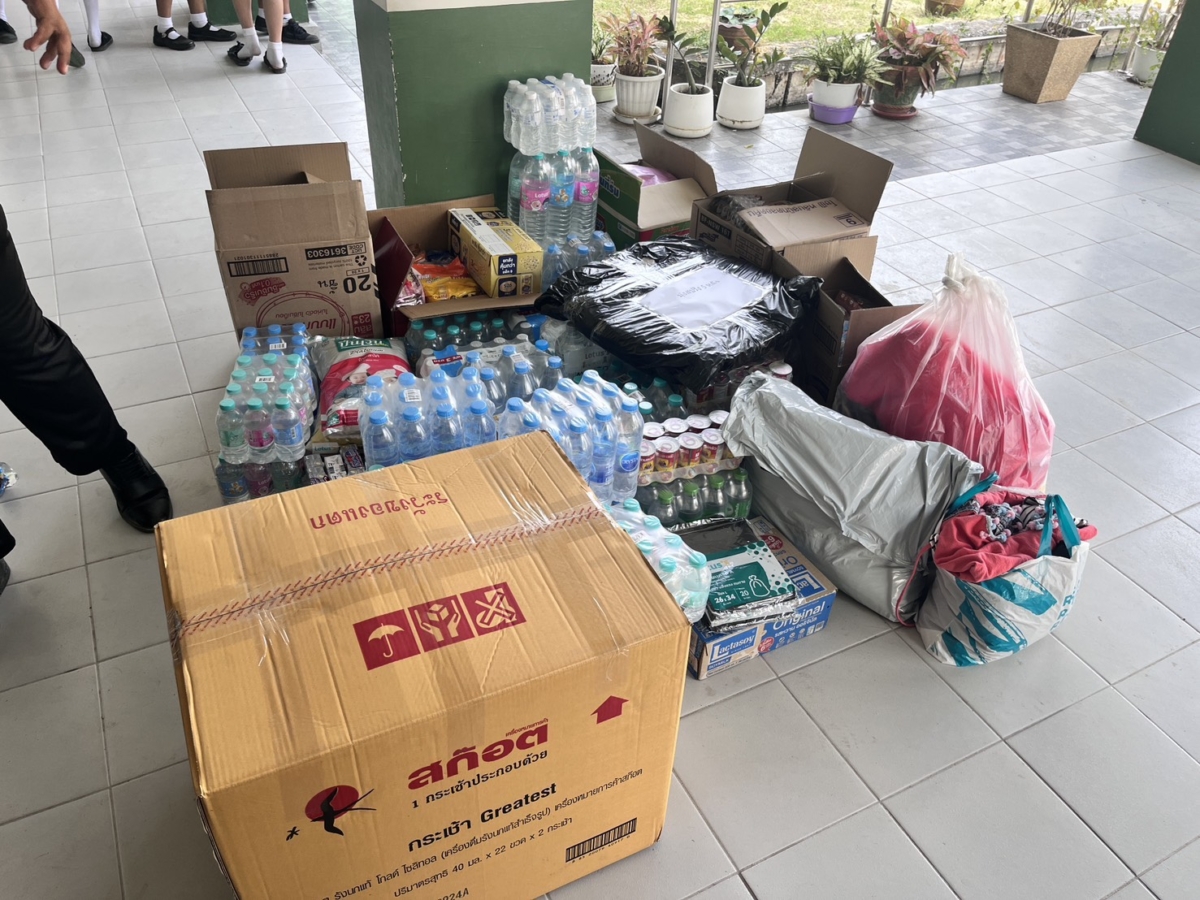 วันพฤหัสบดีที่ 4 ธันวาคม พ.ศ. 2568 โรงเรียนทวีธาภิเศก บางขุนเทียน นำโดย นางสาวอิงฟ้า ประยูรสุข ผู้อำนวยการโรงเรียน พร้อมด้วย คณะผู้บริหาร ครูและบุคลากรทางการศึกษา และนักเรียนโรงเรียนทวีธาภิเศก บางขุนเทียน ขอขอบคุณโลตัส สาขาพระราม 2 ที่ได้บริจาคน้ำดื่มและสิ่งของเครื่องใช้ที่จำเป็น เพื่อให้โรงเรียนนำไปช่วยผู้ประสบภัยน้ำท่วมทางภาคใต้ของไทย โดยมี คณะผู้บริหาร ครูและบุคลากรทางการศึกษา ให้การต้อนรับ ณ ห้องสำนักงานผู้อำนวยการ