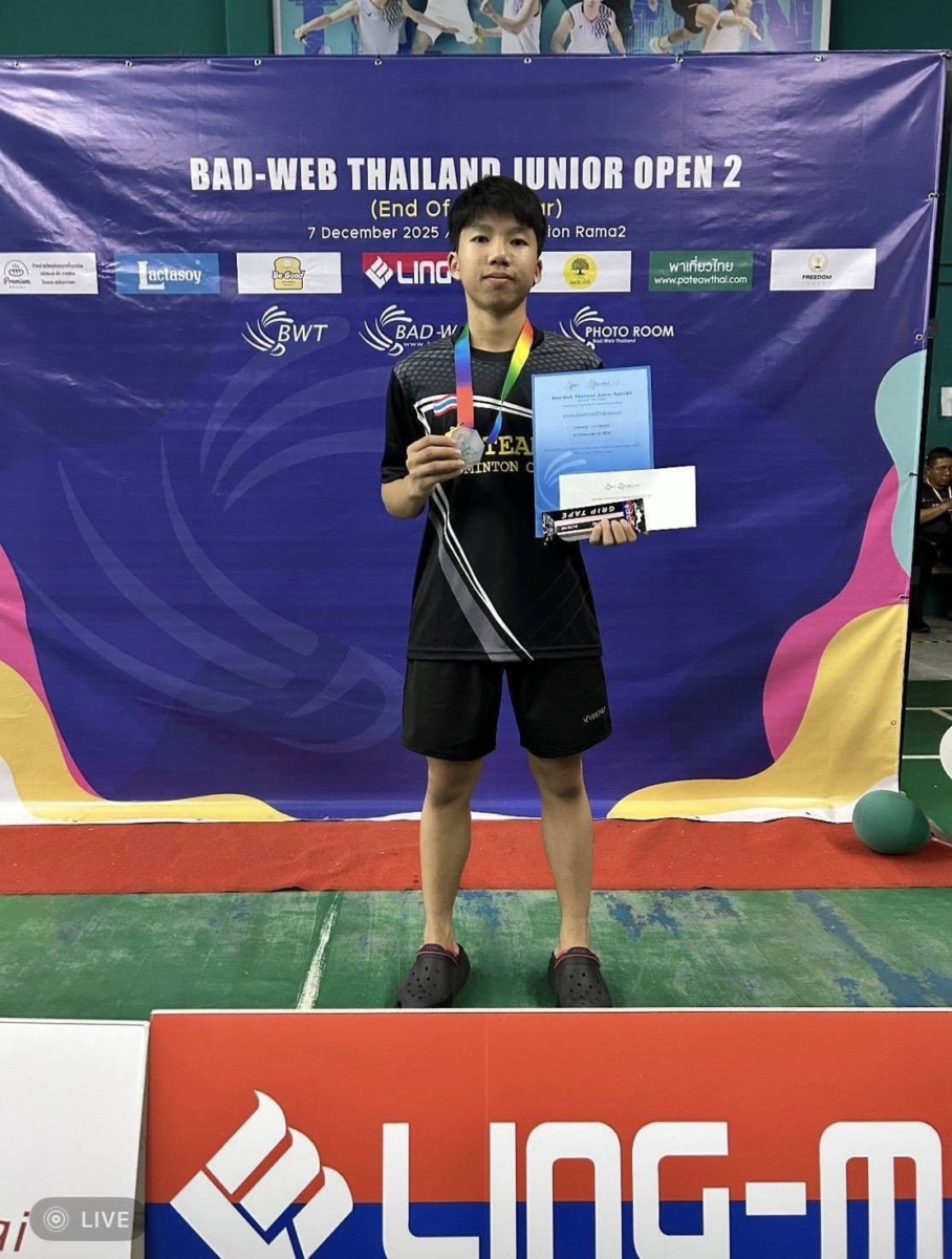 วันจันทร์ที่ 15 ธันวาคม พ.ศ. 2568 โรงเรียนทวีธาภิเศก บางขุนเทียน นำโดย นางสาวอิงฟ้า ประยูรสุข ผู้อำนวยการโรงเรียน พร้อมด้วย ผู้บริหาร ครู และบุคลากรทางการศึกษา ขอแสดงความยินดีกับ ด.ช.นฤชา คงเจริญสุข นักเรียนชั้น ม.3/5 ได้รับรางวัล “ชนะเลิศ” รุ่น BS14 และ นายคุณานนต์ บุญเรือง นักเรียนชั้น ม.6/3 ได้รับรางวัล “รองชนะเลิศ” อันดับ 1 รุ่น BS18 และรางวัล “รองชนะเลิศ” อันดับ 2 รุ่น MS Open ในการเข้าร่วมการแข่งขันแบดมินตัน รายการ Bad-Web Thailand Junior Open 2 (End of The Year) ในวันที่ 7 ธันวาคม 2568 ณ CC Badminton Court