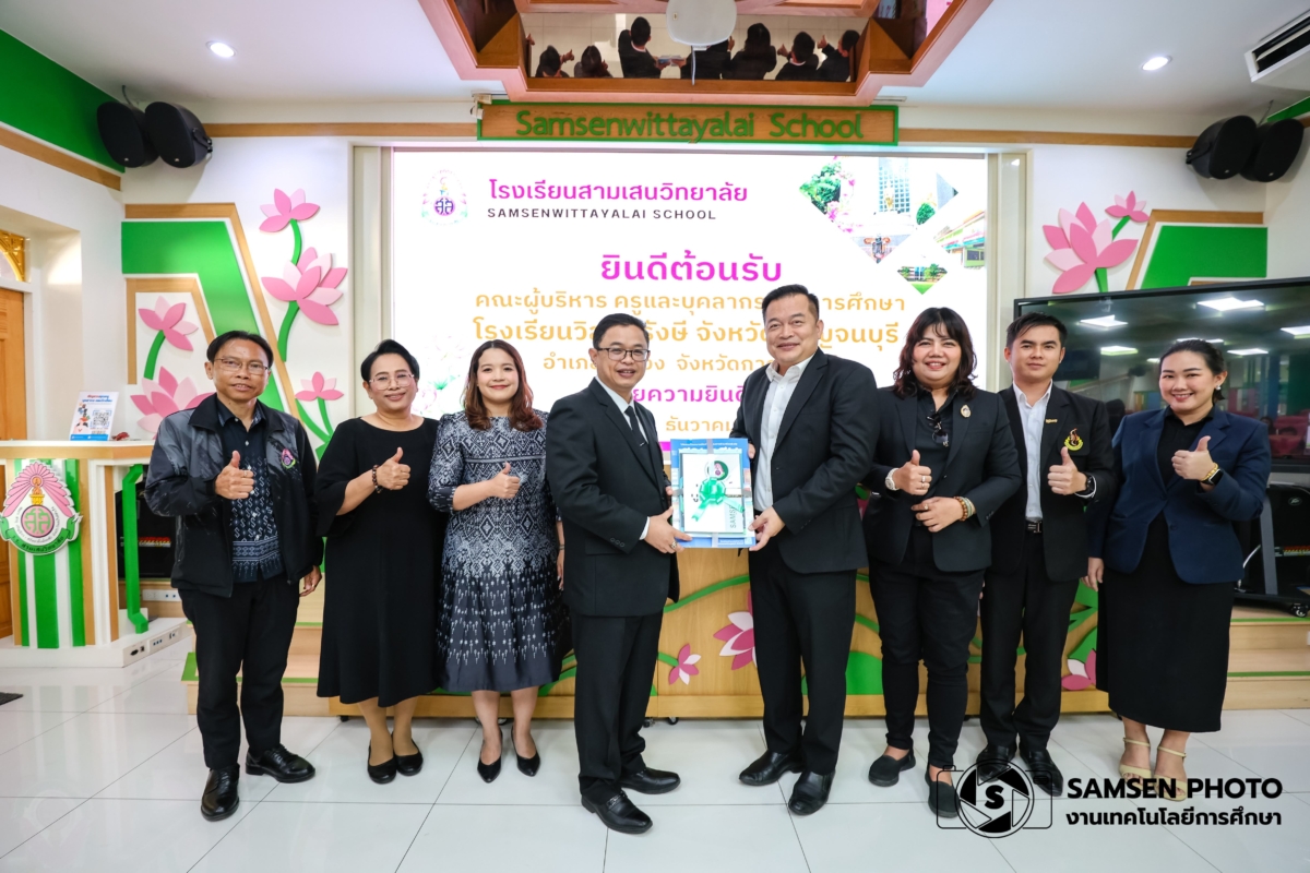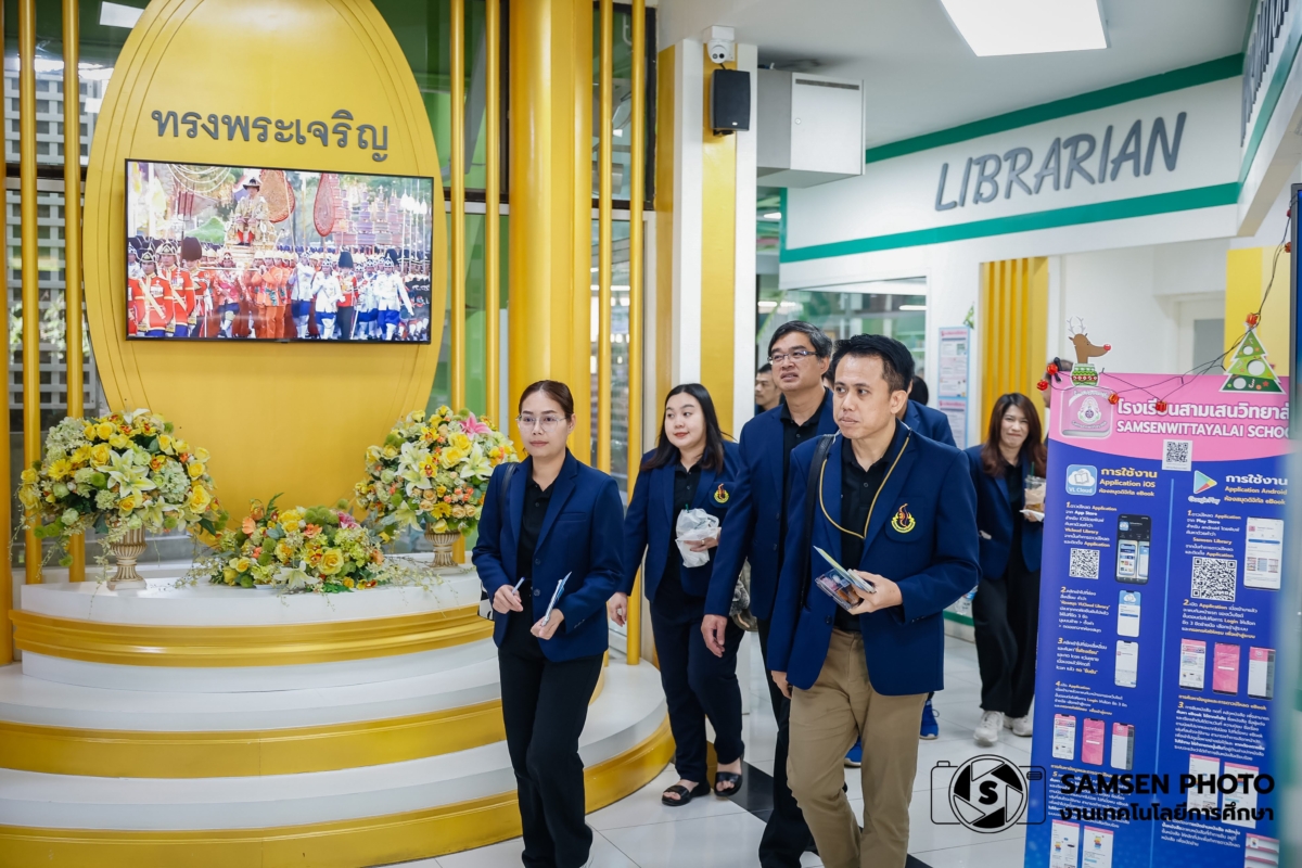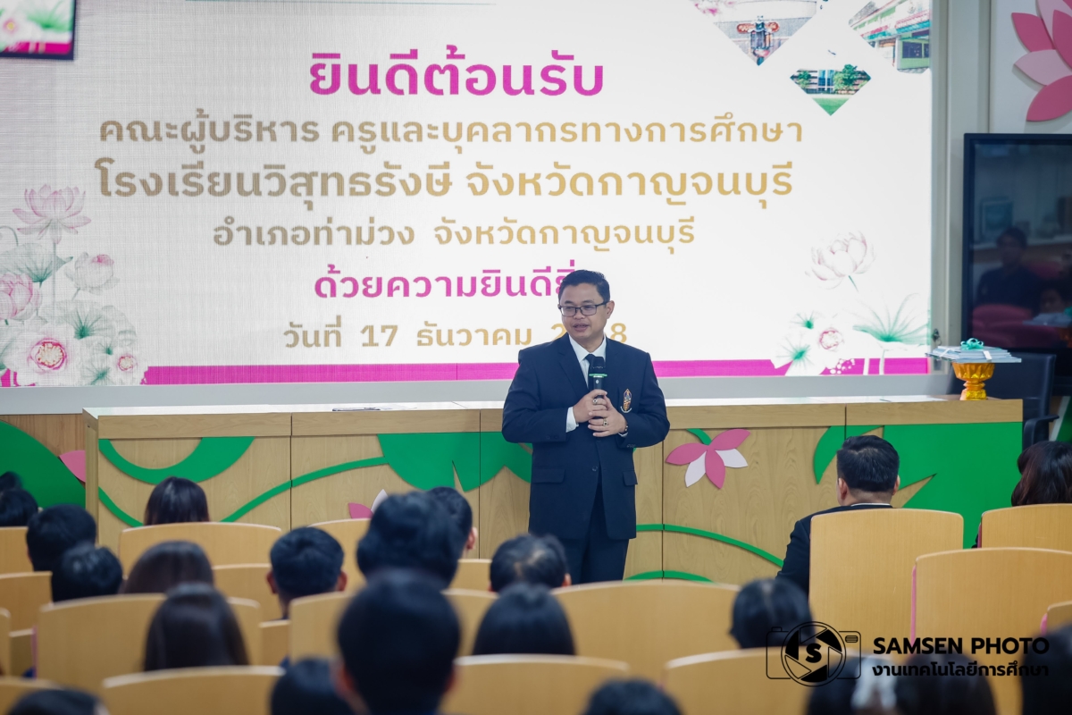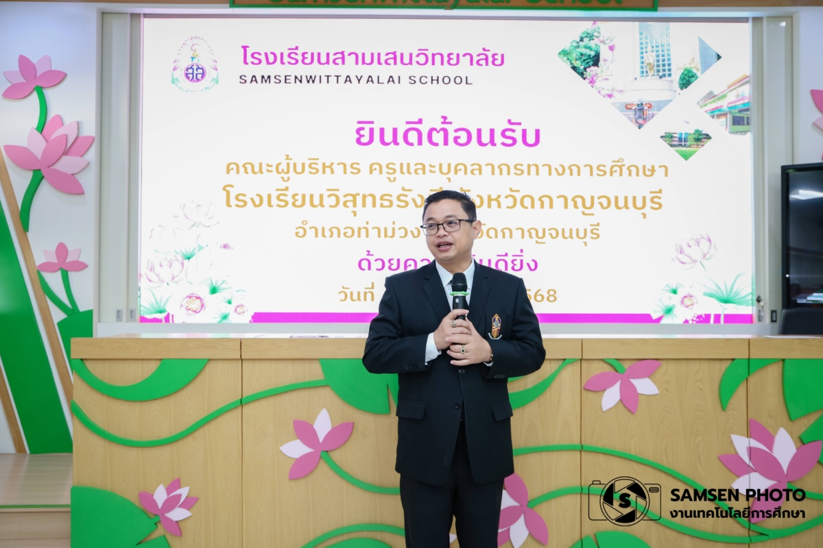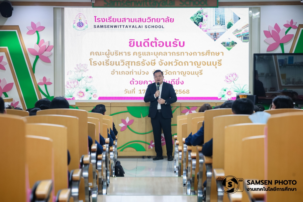 นายประจวบ อินทรโชติ ผู้อำนวยการโรงเรียนสามเสนวิทยาลัย พร้อมด้วยรองผู้อำนวยการ และคณะครูโรงเรียนสามเสนวิทยาลัย ต้อนรับคณะผู้บริหารและคณะครูจากโรงเรียนวิสุทธรังษี จังหวัดกาญจนบุรี อำเภอท่าม่วง จังหวัดกาญจนบุรี นำโดย นายศิวรัตน์ พายุหะ ผู้อำนวยการโรงเรียนวิสุทธรังษี จังหวัดกาญจนบุรี พร้อมรองผู้อำนวยการและคณะครู เข้าศึกษาดูงานด้านหลักสูตรการจัดการเรียนการสอนของโรงเรียนสามเสนวิทยาลัย ณ ห้องศูนย์การเรียนรู้เฉลิมพระเกียรติกาญจนาภิเษก (ห้องสมุด) ในวันพุธที่ 17 ธันวาคม พ.ศ. 2568