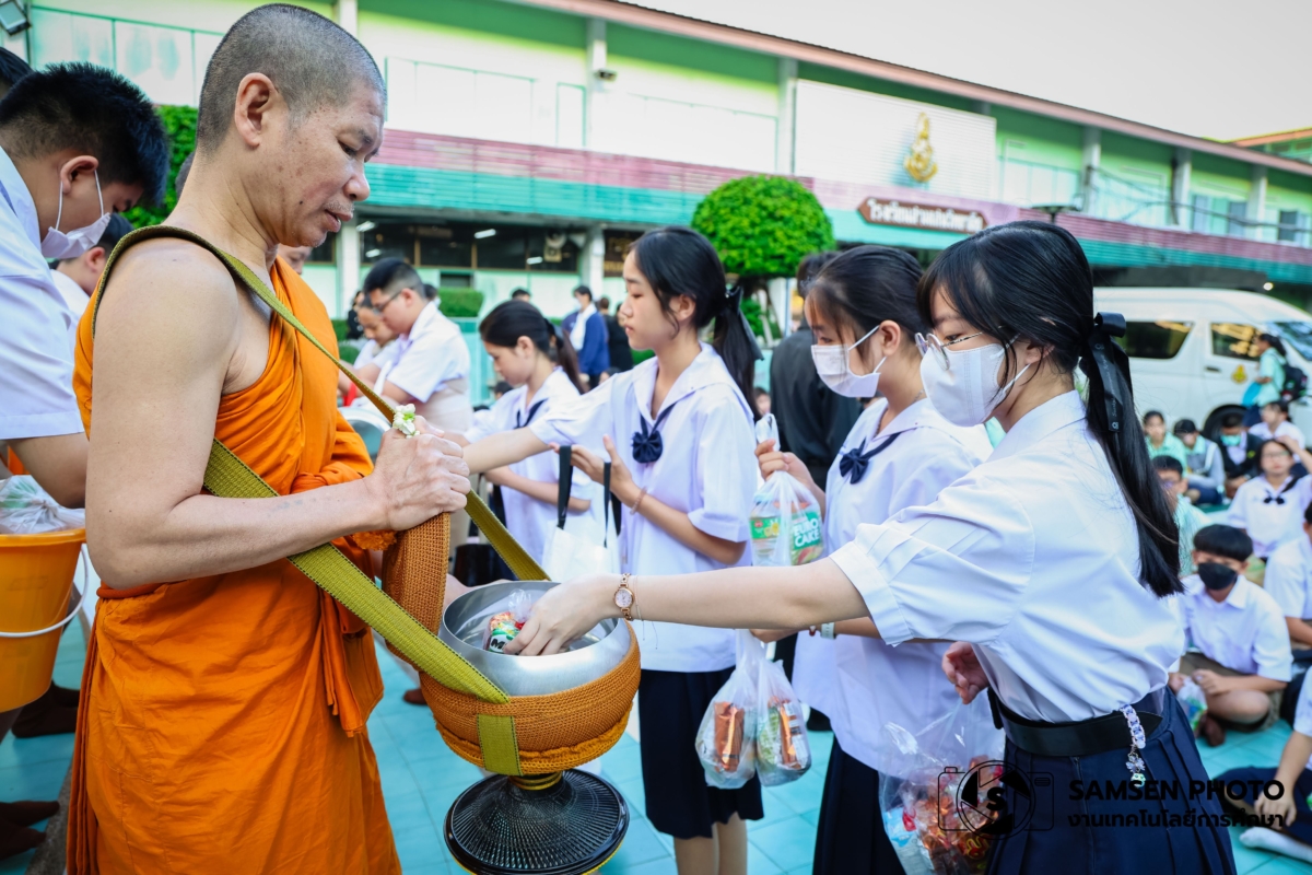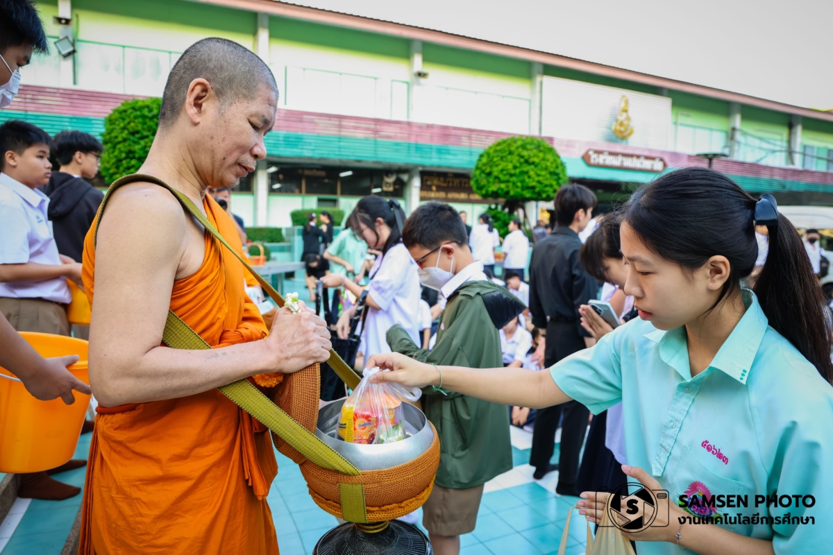 งานส่งเสริมคุณธรรมจริยธรรมนักเรียน กลุ่มบริหารกิจการนักเรียน โรงเรียนสามเสนวิทยาลัย จัดกิจกรรมทำบุญตักบาตรโครงการแผ่นดินธรรมแผ่นดินทอง ในวันพุธที่ 17 ธันวาคม พ.ศ. 2568 เวลา 07.00 น. โดยรองผู้อำนวยการ พร้อมด้วยคณะครู บุคลากรทางการศึกษา ผู้ปกครองและนักเรียนเจ้าภาพ: คณะอยุธยา ม.1/6, ม.3/6, ม.4/8, ม.4/13, ม.5/1, ม.5/15 และคณะรัตนโกสินทร์ ม.5/16, ม.6/8 และ ม.6/12 ร่วมกันทำบุญตักบาตร ณ ลานพระ โรงเรียนสามเสนวิทยาลัย