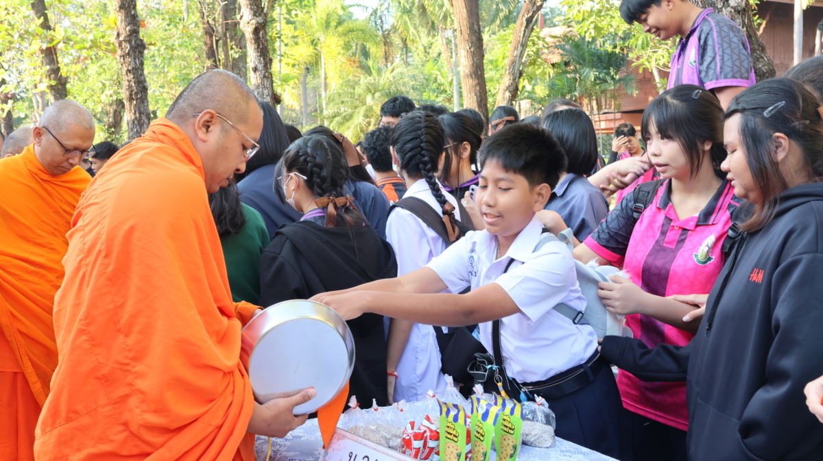 กิจกรรมทำบุญตักบาตรจัดขึ้นเพื่อความเป็นสิริมงคล เนื่องในโอกาสเริ่มต้นปีใหม่ ส่งเสริมให้นักเรียน คณะครู และบุคลากรทางการศึกษาได้ร่วมกันสืบสานวัฒนธรรมทางพระพุทธศาสนา และปลูกฝังคุณธรรม จริยธรรมอันดีงามให้เกิดขึ้นในจิตใจของผู้เรียน ภายหลังจากนั้น โรงเรียนได้จัดกิจกรรมวันเด็กแห่งชาติ เพื่อเปิดโอกาสให้นักเรียนได้แสดงออกอย่างสร้างสรรค์ ได้รับความรู้ ความสนุกสนาน และความสุข ผ่านกิจกรรมที่หลากหลาย ทั้งกิจกรรมนันทนาการ การแสดง และกิจกรรมส่งเสริมทักษะตามวัย โดยมีคณะผู้บริหารและคณะครูร่วมให้กำลังใจและมอบของรางวัลแก่เด็ก ๆ อย่างอบอุ่น โดยได้รับเกียรติจากผู้อุปการะและสนับสนุนอาหาร/เครื่องดื่ม และของขวัญในการมอบให้แก่นักเรียน อีกทั้งยังมีการแสดงเพื่อให้นักเรียนได้สนุกสนานกับกิจกรรมวันเด็ก โดยได้รับเกียรติจากวงดนตรี จากค่าย Tia51 (วง The Third Year และวงรับเชิญ)