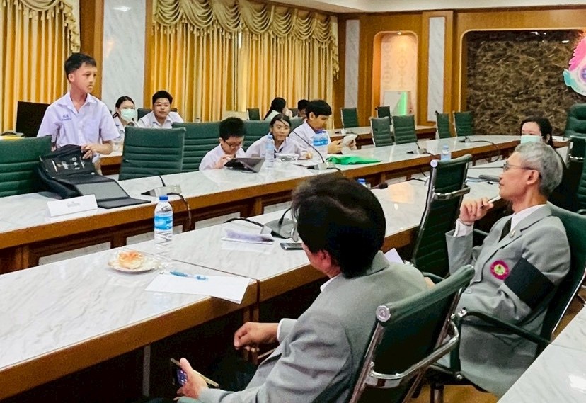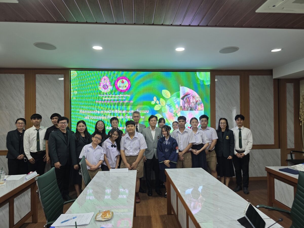 โอกาสนี้ นางสาวปรมาภรณ์ อนุพันธ์ รองผู้อำนวยการกลุ่มบริหารทั่วไป พร้อมด้วย นายธนินทร์ วโนธาดา นายวรินทร์ ศาสตรวาห กรรมการมูลนิธินักเรียนเก่าสามเสนวิทยาลัย คณะครูที่ปรึกษา และคณะครูผู้รับผิดชอบโครงการ ร่วมรับชมการนำเสนอและมอบรางวัลแก่นักเรียนที่เข้าร่วมโครงการ ณ ห้องแพรวชมพู อาคาร 3