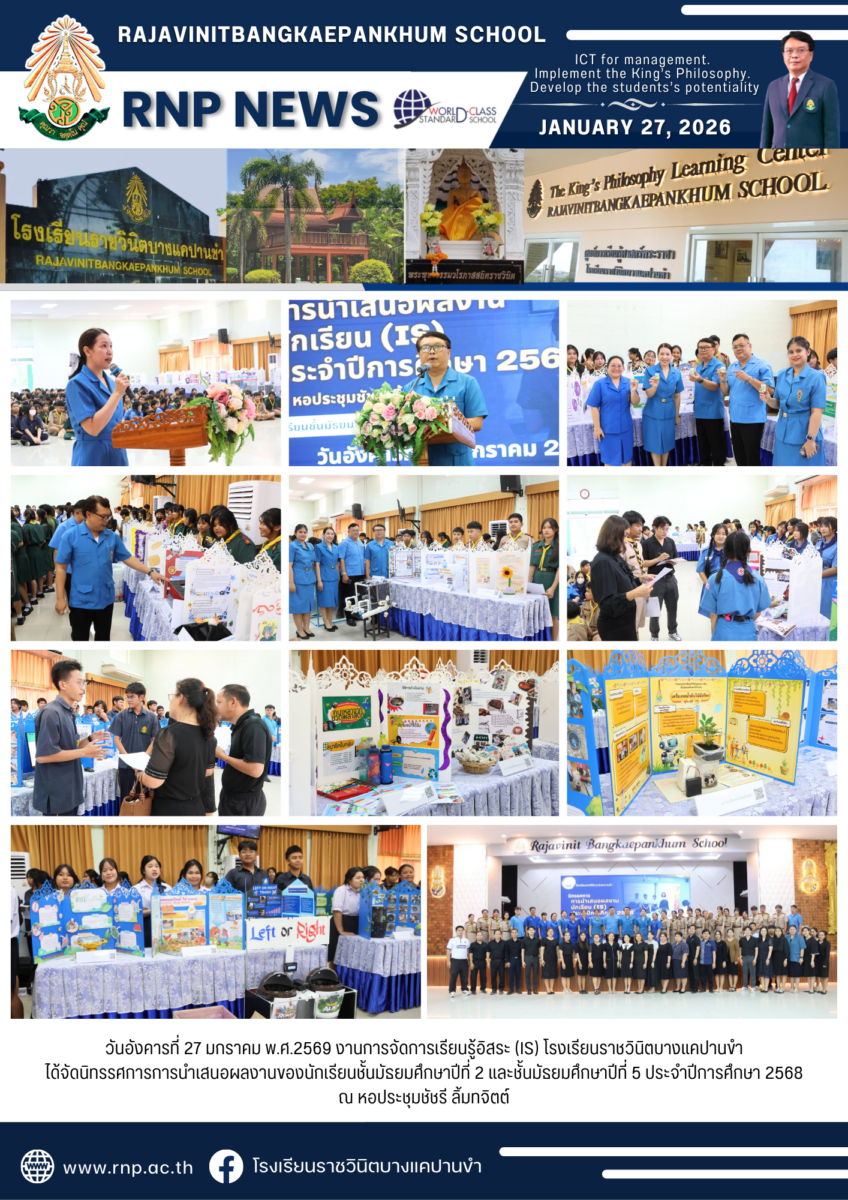 การจัดนิทรรศการนำเสนอผลงาน IS ในครั้งนี้ นับเป็นอีกหนึ่งกิจกรรมสำคัญที่ช่วยส่งเสริมการพัฒนาผู้เรียนให้มีความรู้คู่ทักษะ มีความคิดสร้างสรรค์ และสามารถนำความรู้ที่ได้ไปประยุกต์ใช้ในชีวิตประจำวันและการศึกษาต่อได้อย่างเหมาะสม อันสอดคล้องกับแนวทางการจัดการศึกษาที่มุ่งพัฒนาผู้เรียนอย่างรอบด้าน