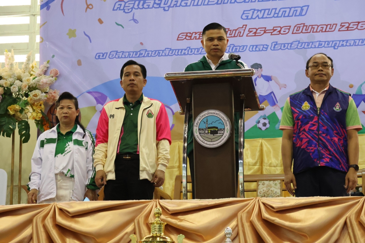 วันศุกร์ที่ 27 มีนาคม พ.ศ. 2569 โรงเรียนทวีธาภิเศก บางขุนเทียน นำโดย นางสาวอิงฟ้า ประยูรสุข ผู้อำนวยการโรงเรียน พร้อมด้วย คณะผู้บริหาร ครูและบุคลากรทางการศึกษา เข้าร่วมกิจกรรมงานกีฬาสัมพันธ์ครูและบุคลากรทางการศึกษา กลุ่มโรงเรียน กลุ่มที่ 5 สพม.กท. 1 ประจำปี 2569 “กลุ่ม 5 สัมพันธ์สร้างสุข กีฬาครู” โดยมีวัตถุประสงค์เพื่อให้เกิดความร่วมมือในการทำงานและสร้างความสามัคคีในกลุ่มโรงเรียนให้เป็นอันหนึ่งเดียวกัน ประกอบกับเล็งเห็นความสำคัญในการออกกำลังกาย การรักษาสุขภาพ เป็นการผ่อนคลายความเครียดให้กับบุคลากรทางการศึกษา ซึ่งกิจกรรมมีผู้บริหาร ครูและบุคลากรทางการศึกษาเข้าร่วมทั้งสิ้นจำนวน 11 โรงเรียน โดย นายถนอม บุญโต รองผู้อำนวยการสำนักงานเขตพื้นที่การศึกษามัธยมศึกษากรุงเทพมหานคร เขต 1 เป็นประธานในพิธีเปิด ณ อิสลามวิทยาลัยแห่งประเทศไทย