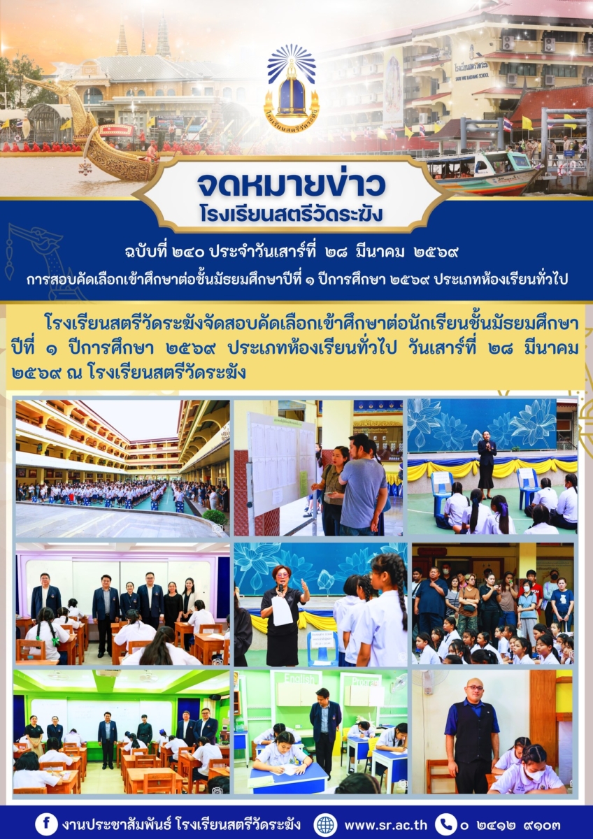วันเสาร์ที่ ๒๘ มีนาคม ๒๕๖๙ ณ โรงเรียนสตรีวัดระฆัง