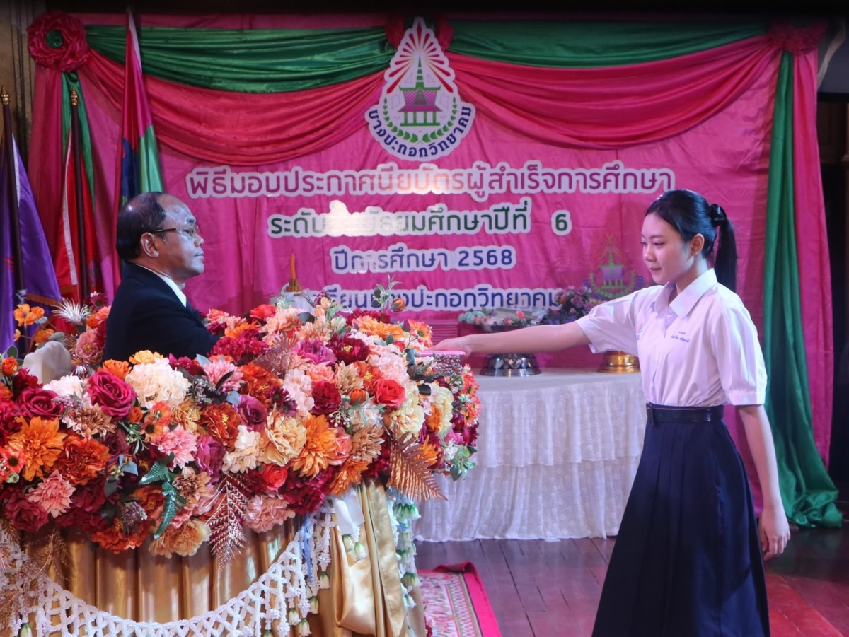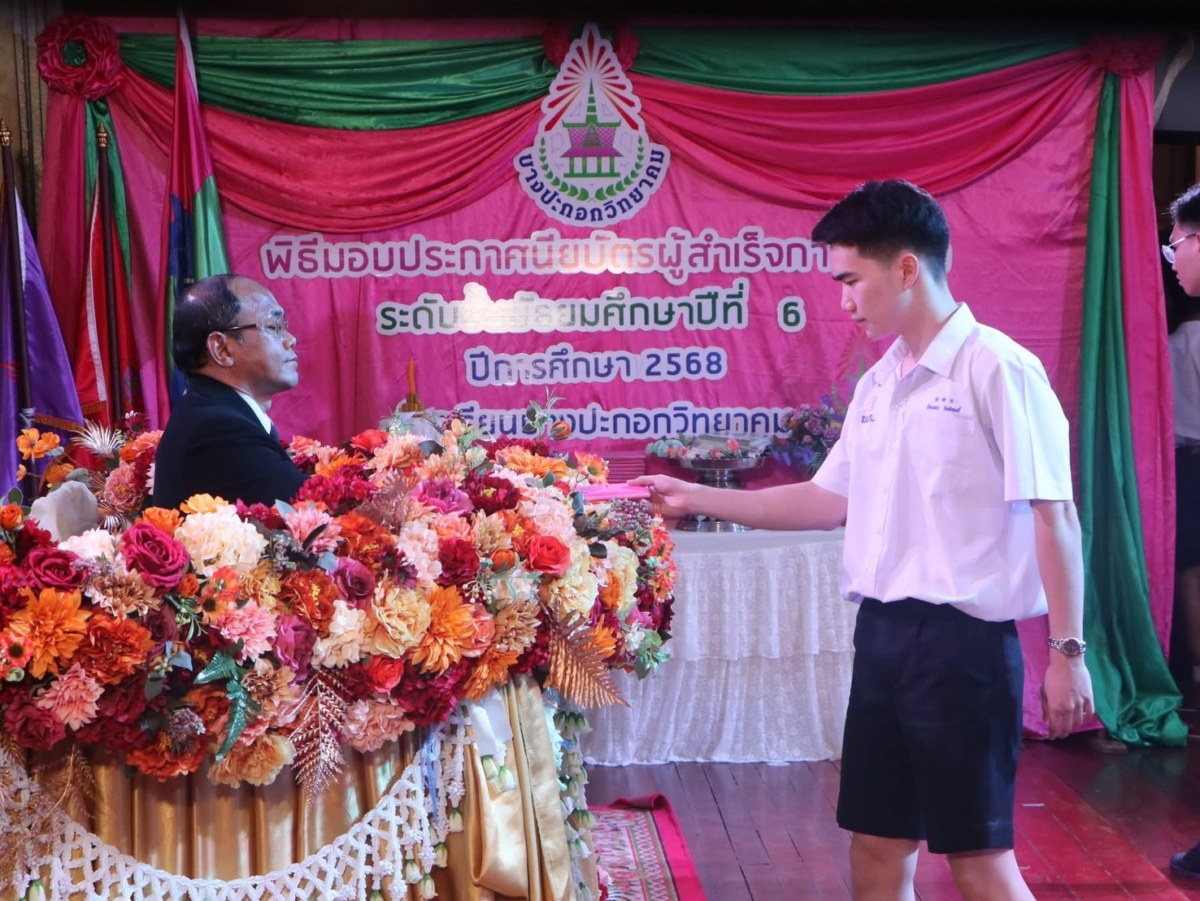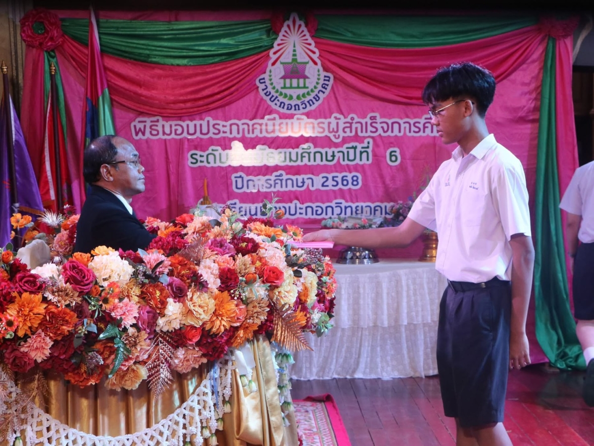 พิธีมอบประกาศนียบัตร ผู้สำเร็จการศึกษาระดับชั้นมัธยมศึกษาปีที่ 6 รุ่น “ปัณณรสทิพากร” ระดับชั้นมัธยมศึกษาปีที่ 6 ประจำปีการศึกษา 2568 ณ ห้องประชุมยูงทอง โรงเรียนบางปะกอกวิทยาคม