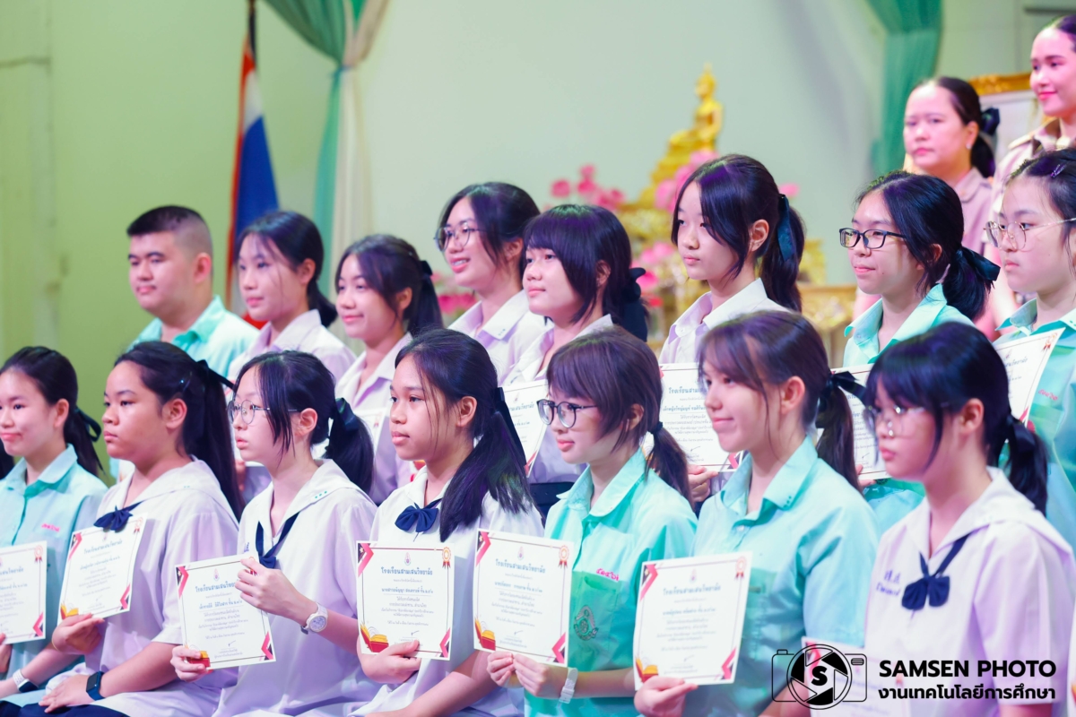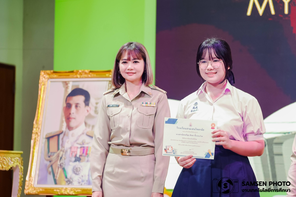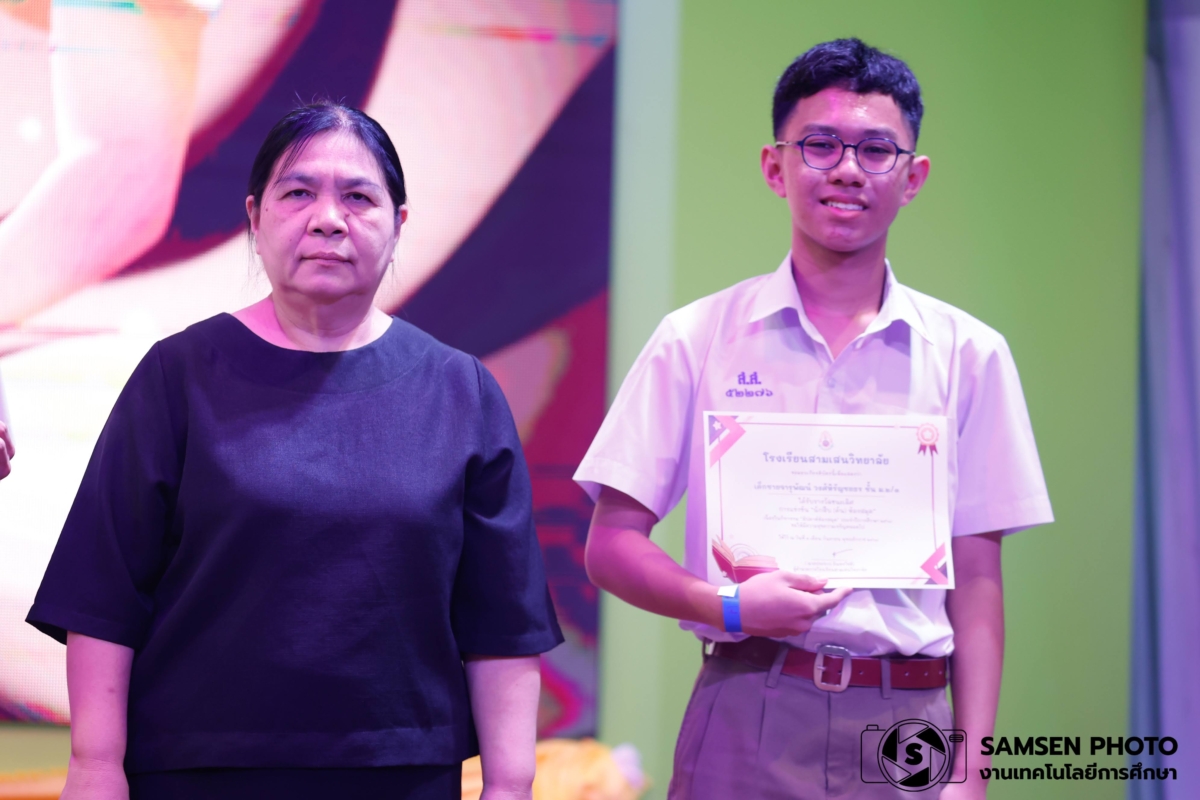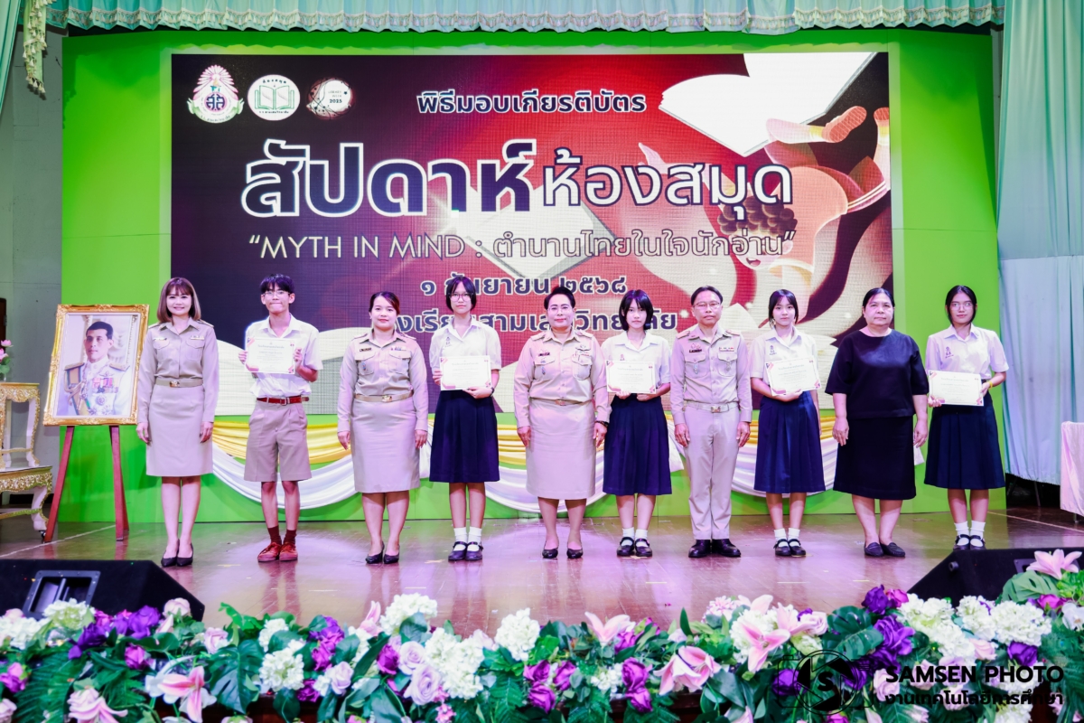 งานพัฒนาแหล่งเรียนรู้ กลุ่มบริหารวิชาการ จัดพิธีมอบเกียรติบัตรแก่นักเรียนที่เข้าร่วมการแข่งขันกิจกรรมสัปดาห์ห้องสมุด “Myth in Mind : ตำนานไทยในใจนักอ่าน” ปีการศึกษา 2568 ประกอบด้วยกิจกรรมที่คั่นหนังสื่อสื่อความรู้ กิจกรรมสรุปข่าวเล่าเรื่อง กิจกรรมออกแบบมาสคอตห้องสมุด กิจกรรมประกวดคอสเพลย์ กิจกรรมเล่าขานตำนานไทย กิจกรรมนักสืบค้นห้องสมุด และกิจกรรมหนังสือเล่มเล็ก โดย นางสาวจินต์จุฑา พรหมรักษ์ รองผู้อำนวยการโรงเรียนสามเสนวิทยาลัย พร้อมด้วยคณะผู้บริหารและครูร่วมมอบรางวัลแก่นักเรียน ณ หอประชุมอาคารอาคารอเนกประสงค์ ในวันจันทร์ที่ 1 กันยายน พ.ศ. 2568 เวลา 07.40 น.