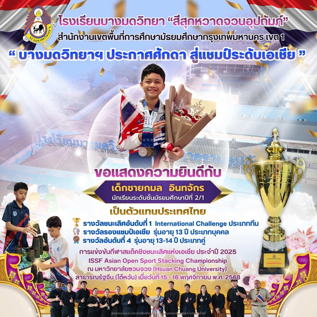 ขอชื่นชมในความมุ่งมั่น ความพยายาม และการสร้างชื่อเสียงให้ประเทศไทยและโรงเรียนของเราอย่างภาคภูมิใจ