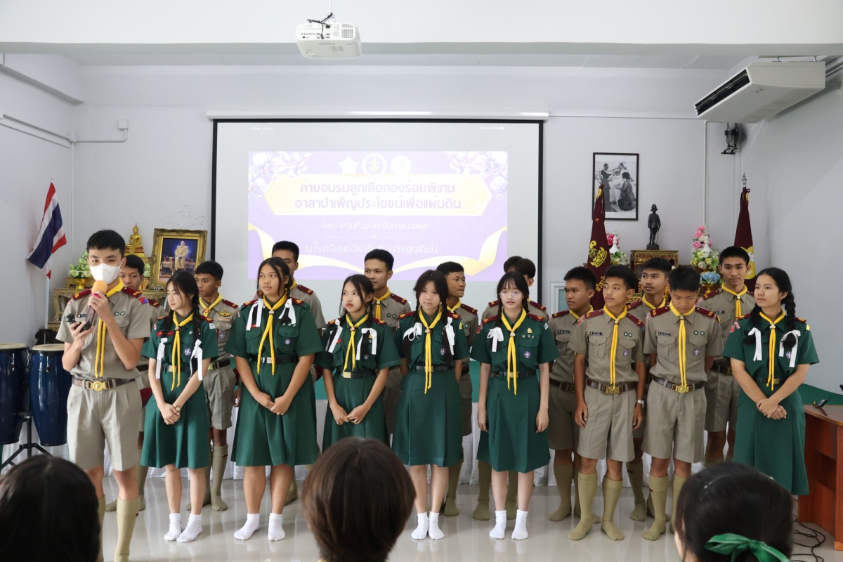 วันพุธที่ 24 กันยายน พ.ศ. 2568 โรงเรียนทวีธาภิเศก บางขุนเทียน นำโดย นางสาวอิงฟ้า ประยูรสุข ผู้อำนวยการโรงเรียน มอบหมายให้ งานกิจการนักเรียน จัดโครงการอบรมลูกเสือกองร้อยพิเศษอาสาบำเพ็ญประโยชน์เพื่อแผ่นดินอันเป็นการสืบสานพระราชปณิธานของพระบาทสมเด็จพระเจ้าอยู่หัวที่ได้ทรงพระราชทานหลักสูตรลูกเสือไว้เพื่อให้ลูกเสือทุกเหล่าทุกกองได้มีโอกาสถวายงานด้านจิตอาสาในการช่วยเหลือประชาชน โดยมี นางสาวอิงฟ้า ประยูรสุข ผู้อำนวยการโรงเรียน เป็นประธานในพิธี พร้อมด้วย คณะผู้กำกับลูกเสือกองร้อยพิเศษโรงเรียนสวนกุหลาบวิทยาลัยธนบุรีและโรงเรียนทวีธาภิเศก บางขุนเทียน ร่วมดำเนินการให้ความรู้ความเข้าใจและฝึกอบรมบ่มเพาะการมีจิตอาสา มีระเบียบวินัย มีความเป็นผู้นำ แก่ลูกเสือและเนตรนารี ซึ่งจัดขึ้นระหว่างวันที่ 22 – 23 กันยายน 2568 ณ ห้องประชุมรัชฎา