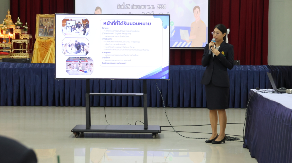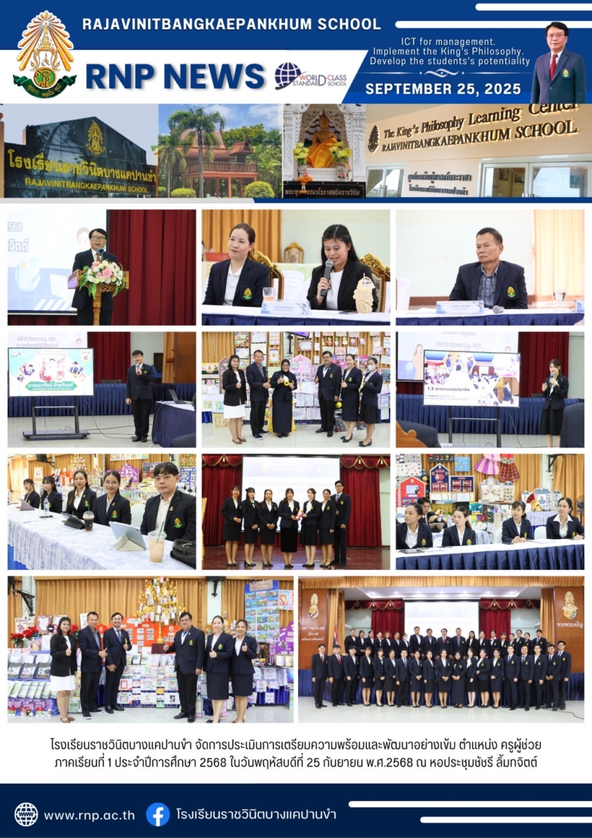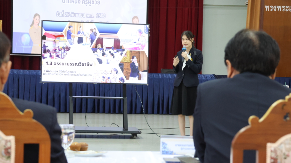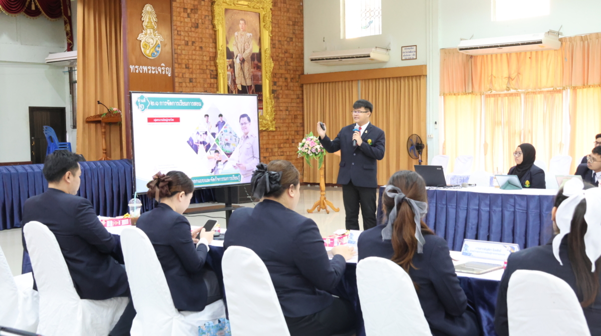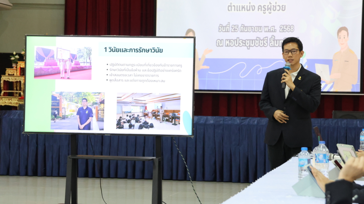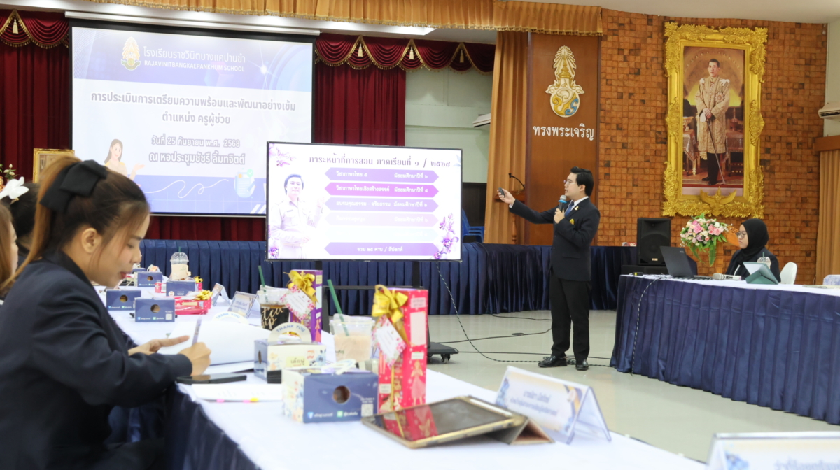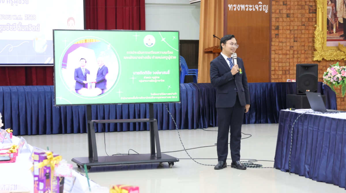 ด้วยกลุ่มบริหารงานบุคคล ได้จัดประเมินเตรียมความพร้อมและพัฒนาอย่างเข้ม ตำแหน่งครูผู้ช่วย เพื่อประเมินผลการปฏิบัติตนและการปฏิบัติงานของครูผู้ช่วย ให้เป็นไปตามหลักเกณฑ์ ตัวชี้วัด และวิธีการ จึงได้จัดการประเมินการเตรียมความพร้อมและพัฒนาอย่างเข้ม ตำแหน่งครูผู้ช่วย ภาคเรียนที่ 1 ประจำปีการศึกษา 2568 ขึ้นในวันที่ 25 กันยายน 2568 ซึ่งการประเมินในครั้งนี้มีครูผู้ช่วยที่เข้ารับการประเมินจำนวน 18 คน ประกอบไปด้วย