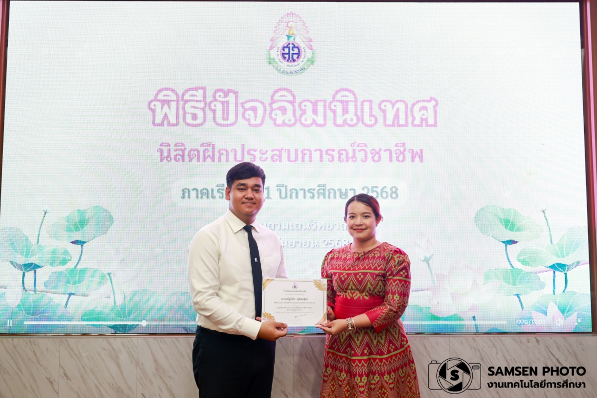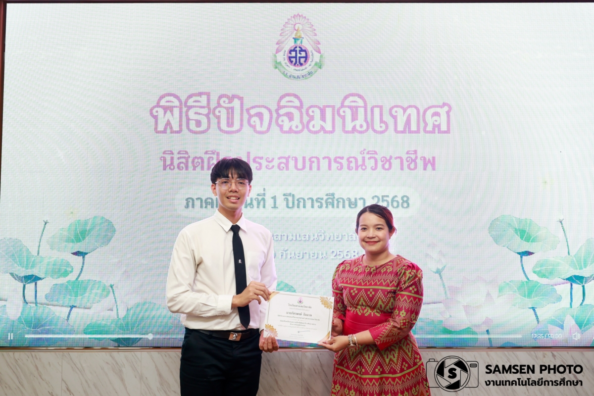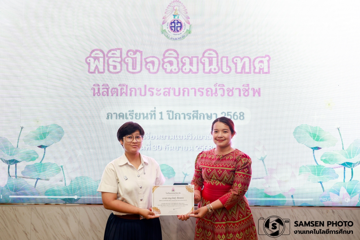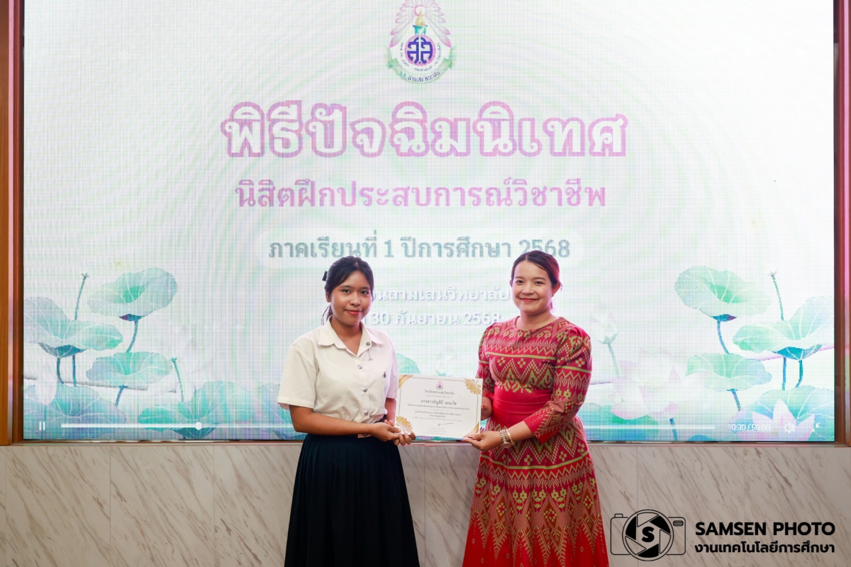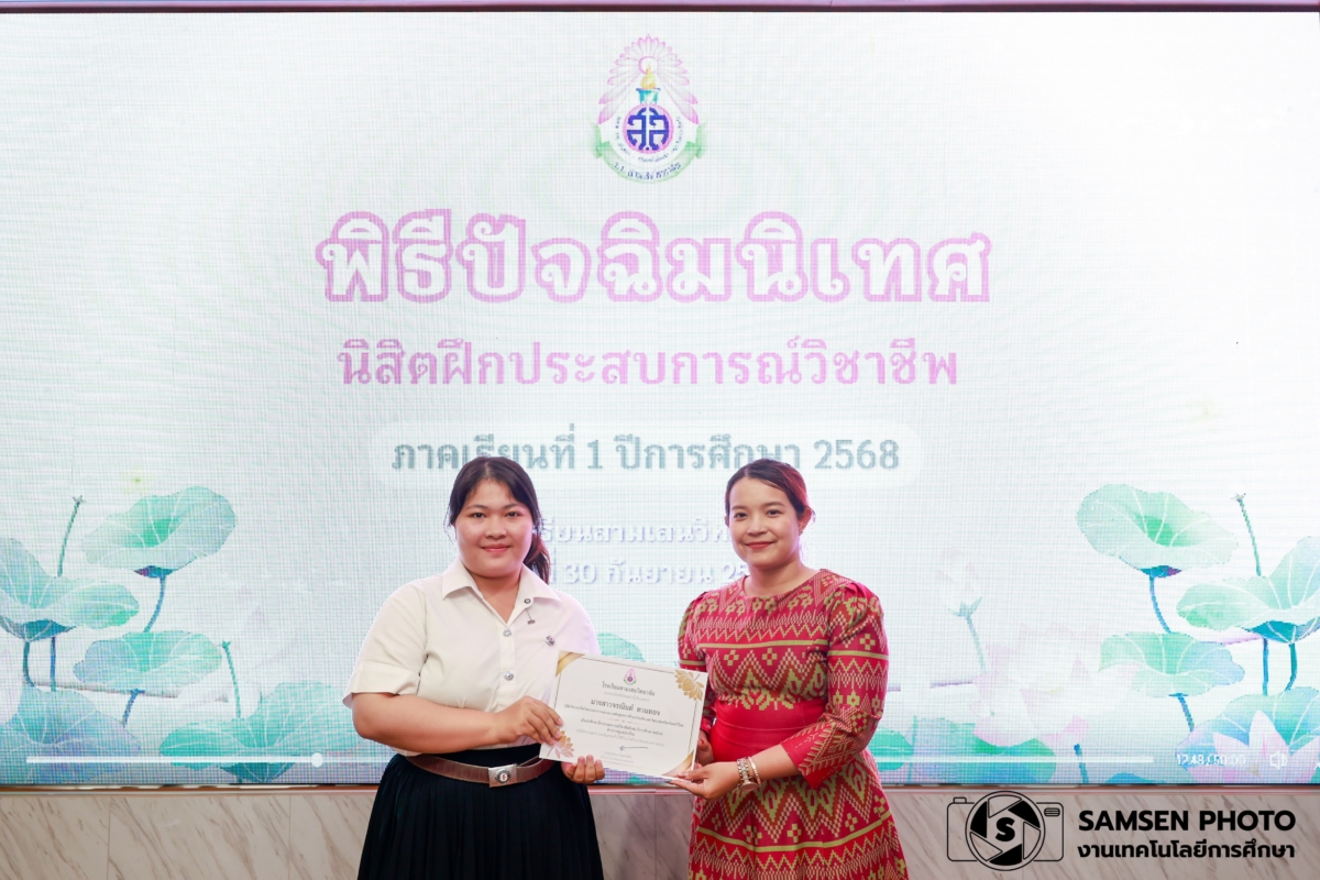 งานฝึกประสบการณ์วิชาชีพ กลุ่มบริหารวิชาการ โรงเรียนสามเสนวิทยาลัย จัดพิธีปัจฉิมนิเทศนิสิตฝึกประสบการณ์วิชาชีพ ภาคเรียนที่ 1 ปีการศึกษา 2568 โดยนางสาวจินต์จุฑา พรหมรักษ์ รองผู้อำนวยการโรงเรียนสามเสนวิทยาลัย เป็นประธานในพิธี พร้อมด้วยคณะครู ผู้ช่วยศาสตราจารย์ ดร. จุฑารัตน์ วิบูลผล อาจารย์ภาควิชาหลักสูตรและการสอน คณะครุศาสตร์ จุฬาลงกรณ์มหาวิทยาลัยและนิสิตฝึกประสบการณ์วิชาชีพจากจุฬาลงกรณ์มหาวิทยาลัย และมหาวิทยาลัยศรีนครินทรวิโรฒ จำนวน 17 คน เข้าร่วมพิธี ณ ห้องแพรวชมพู อาคาร 3 โรงเรียนสามเสนวิทยาลัย ในวันอังคารที่ 30 กันยายน พ.ศ. 2568
