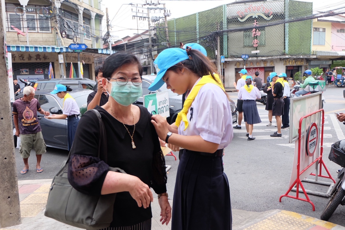 5 พฤศจิกายน 2568 ดร.กำพล วิลยาลัย ผู้อำนวยการโรงเรียนธนบุรีวรเทพีพลารักษ์ พร้อมด้วยคณะครูและกลุ่มนักเรียนเยาวชนจิตอาสา ร่วมกันจัดกิจกรรมจิตอาสาเพื่อสังคม โดยการลงพื้นที่มอบริบบิ้นสีดำแสดงความไว้อาลัย ให้แก่ประชาชนในย่านชุมชนตลาดพลู เขตธนบุรี กรุงเทพมหานคร