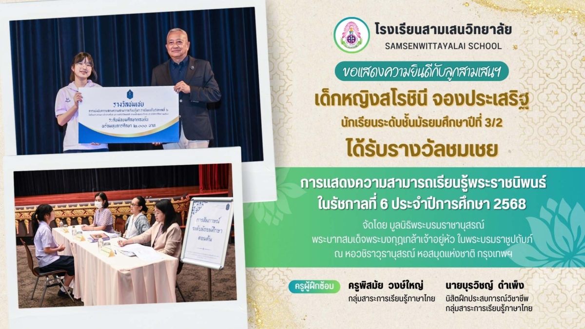 ลูกสามเสนฯ คว้า “รางวัลชนะเลิศ” การแข่งขันการประชันกลอนสด ประจำปี 2568 (ระดับมัธยมศึกษา) ระดับภูมิภาค กรุงเทพฯ และปริมณฑล และเป็นตัวแทนไปแข่งระดับชาติ