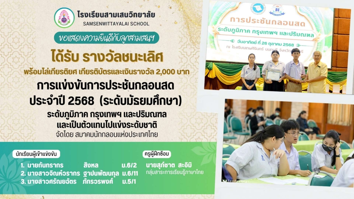 ลูกสามเสนฯ ได้รับ “รางวัลชมเชย” การแสดงความสามารถเรียนรู้พระราชนิพนธ์ ในรัชกาลที่ 6 ประจำปีการศึกษา 2568
