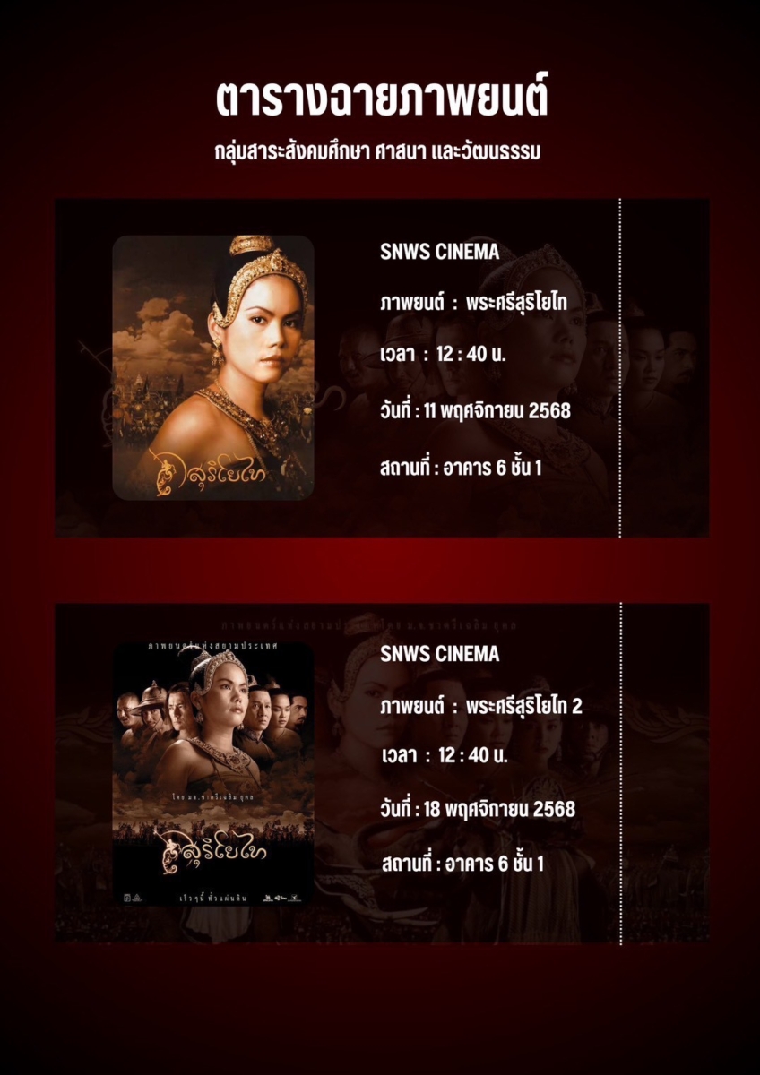 กลุ่มสาระสังคมศึกษาฯ โรงเรียนศึกษานารีวิทยา นำโดยท่านผู้อำนวยการราชันต์ ทิพยโสต จัดกิจกรรมการฉายภาพยนตร์ประวัติศาสตร์เพื่อปลูกฝัง ความภูมิใจในชาติและความเข้าใจในวัฒนธรรมไทย ผ่านหน้าจอภาพยนตร์ ให้กับนักเรียน เรื่อง พระศรีสุริโยไท เมื่อวันอังคารที่ ๑๑ พฤศจิกายน พ.ศ. ๒๕๖๘