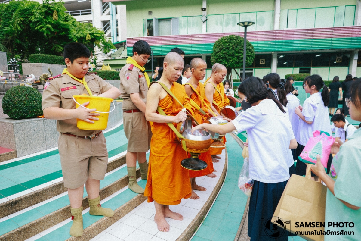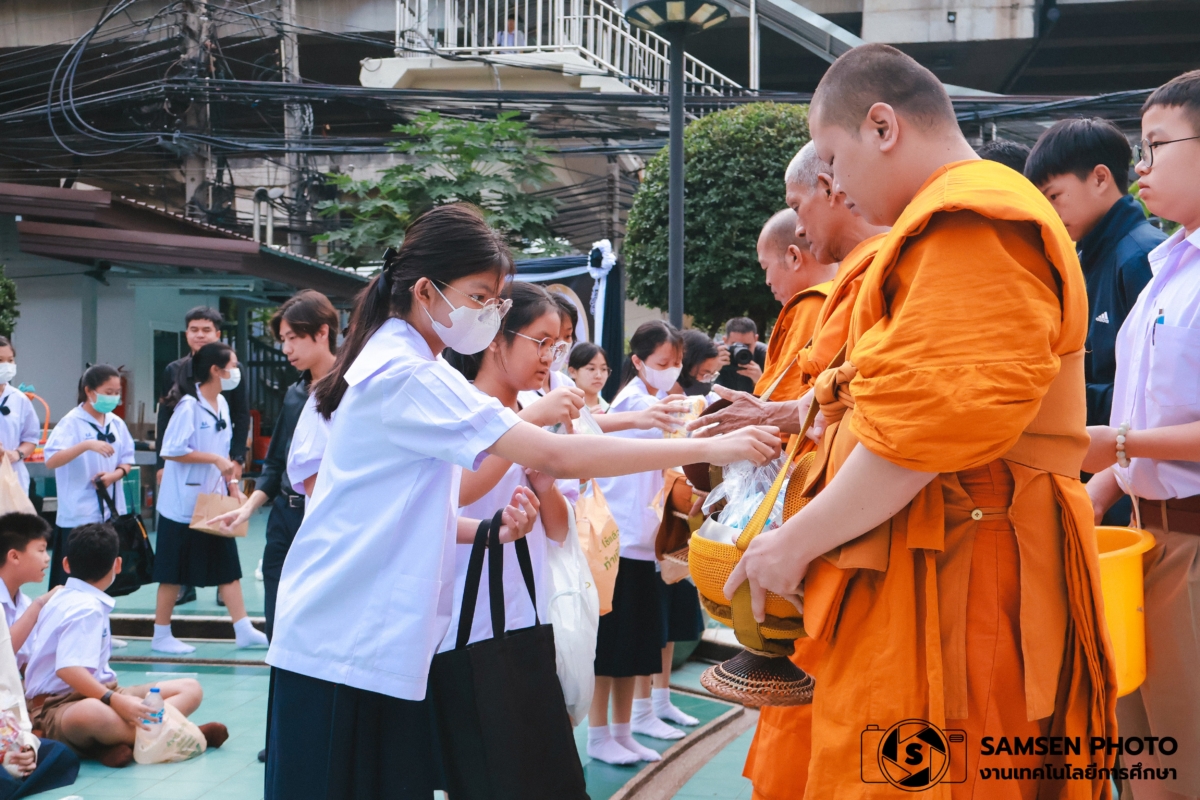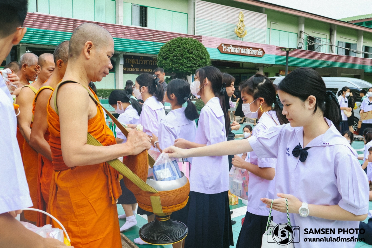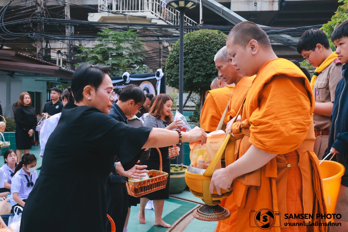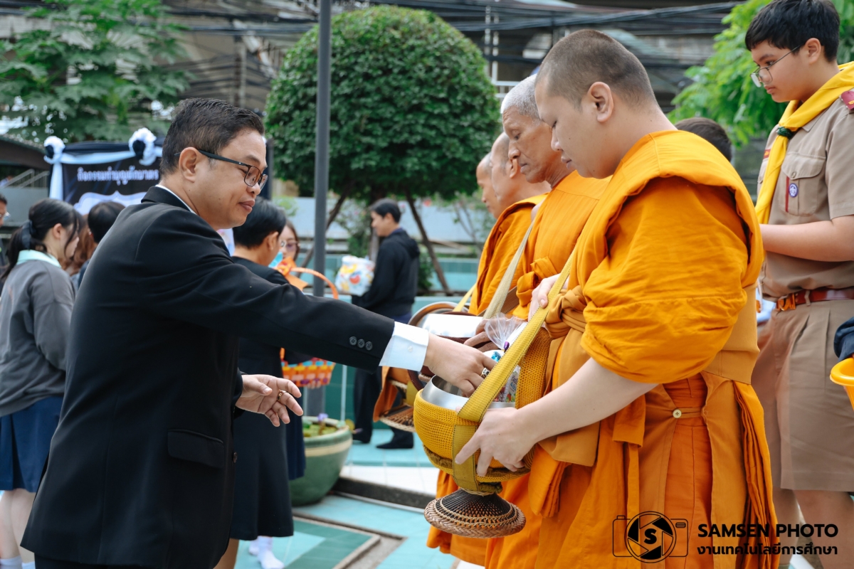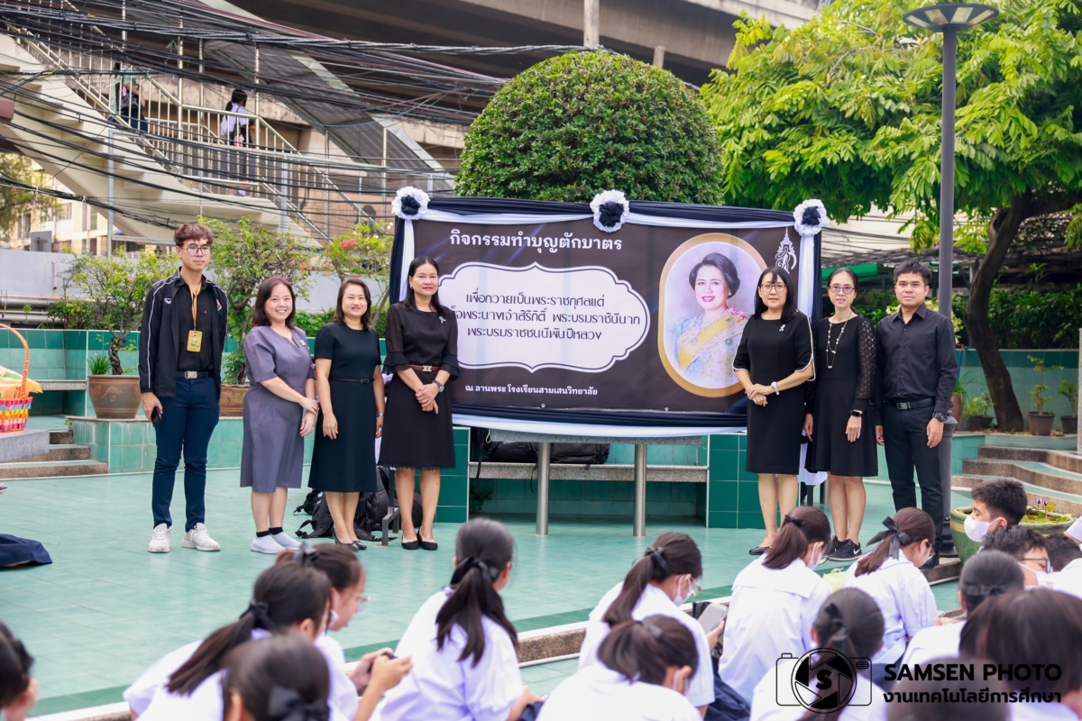 งานส่งเสริมคุณธรรมจริยธรรมนักเรียน กลุ่มบริหารกิจการนักเรียน จัดกิจกรรมทำบุญตักบาตรเพื่อถวายเป็นพระราชกุศลแด่สมเด็จพระนางเจ้าสิริกิติ์ พระบรมราชินีนาถ พระบรมราชชนนีพันปีหลวง ในวันพุธที่ 19 พฤศจิกายน พ.ศ. 2568 เวลา 07.00 น. ณ ลานพระ โดยนายประจวบ อินทรโชติ ผู้อำนวยการโรงเรียนสามเสนวิทยาลัย รองผู้อำนวยการ ครู บุคลากร ผู้ปกครองและนักเรียนเจ้าภาพ คณะเชียงแสน ม.1/3 ม.3/12 ม.4/15 ม.5/7 และ ม.6/9 ร่วมทำบุญตักบาตร ณ ลานพระ