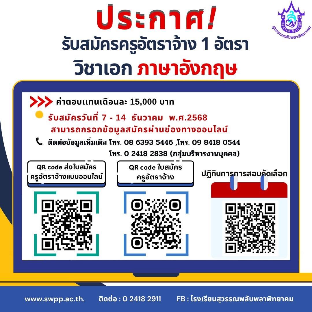 📍ณ โรงเรียนสุวรรณพลับพลาพิทยาคม และช่องทางออนไลน์ ไม่เว้นวันหยุดราชการ